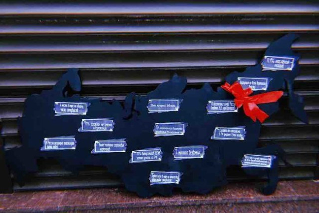 Також у неділю кілька опозиційних активістів були затримані і в Москві. Вони принесли до будівлі адміністрації президента карту Росії, на якій відзначили досягнення країни за роки правління Володимира Путіна.