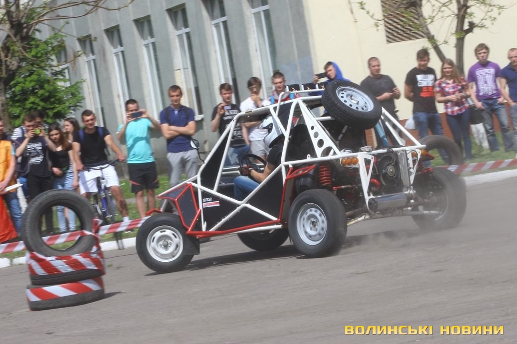 Видовищним став виступ студента машинобудівного факультету ЛНТУ, ковельчанина Олега Гурка.Юнак декілька років захоплюється дріфтом – це мистецтво керування автомобілем в контрольованому заносі. Декілька років тому він придбав старенький Nissan 200SX, який поступово тюнінгував. Відтак, нині під капотом у нього близько 300 «конячок», якими він вміло керує.