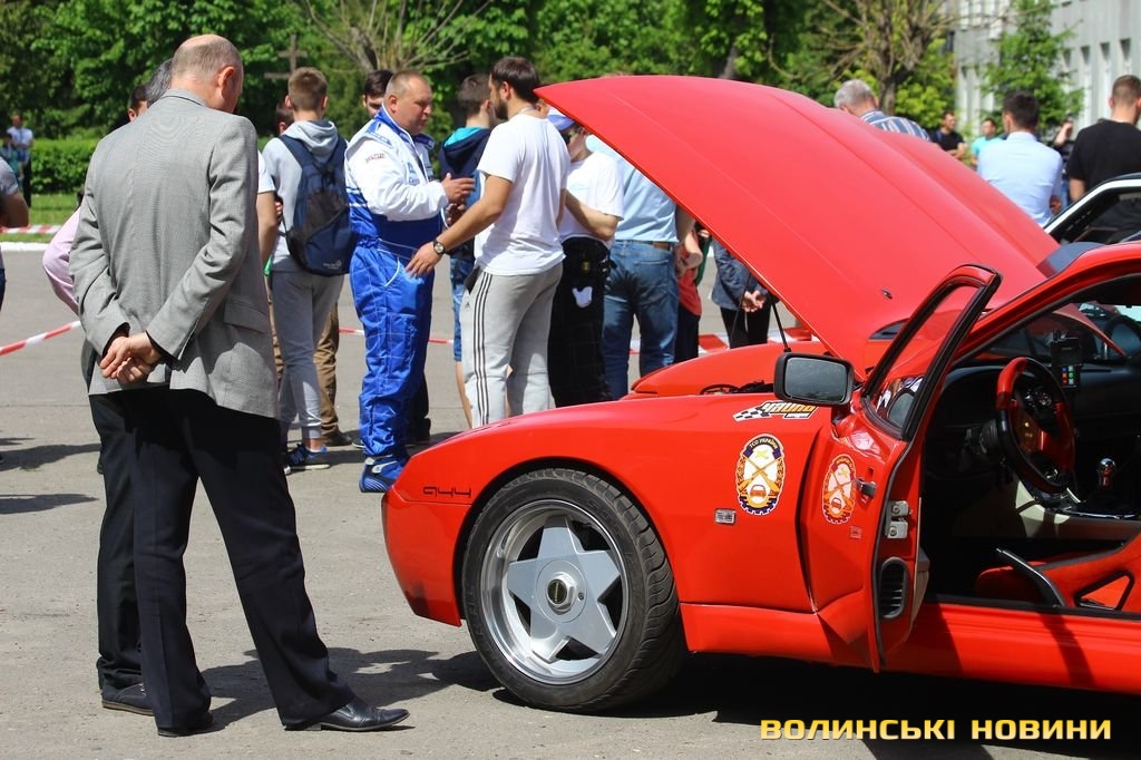 Приємно, що такі речі проводять в Луцьку, щось показують та розказують.... але чому не можна було це все зробити на більшій площадці, ніж на парковці перед корпусом ЛНТУ? порше далеко не стоковий по зовнішньому вигляду (гугл в допомогу, є також посилання на Drive2.ru, де майже все розписано про даний автомобіль)