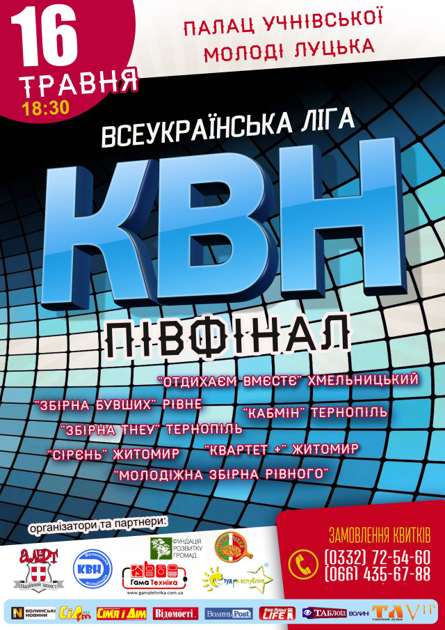 Квитки на другий півфінал можна купити у касі драмтеатру щодня з 13:00 до 19:00, або ж замовити їх за телефоном 72-54-60.