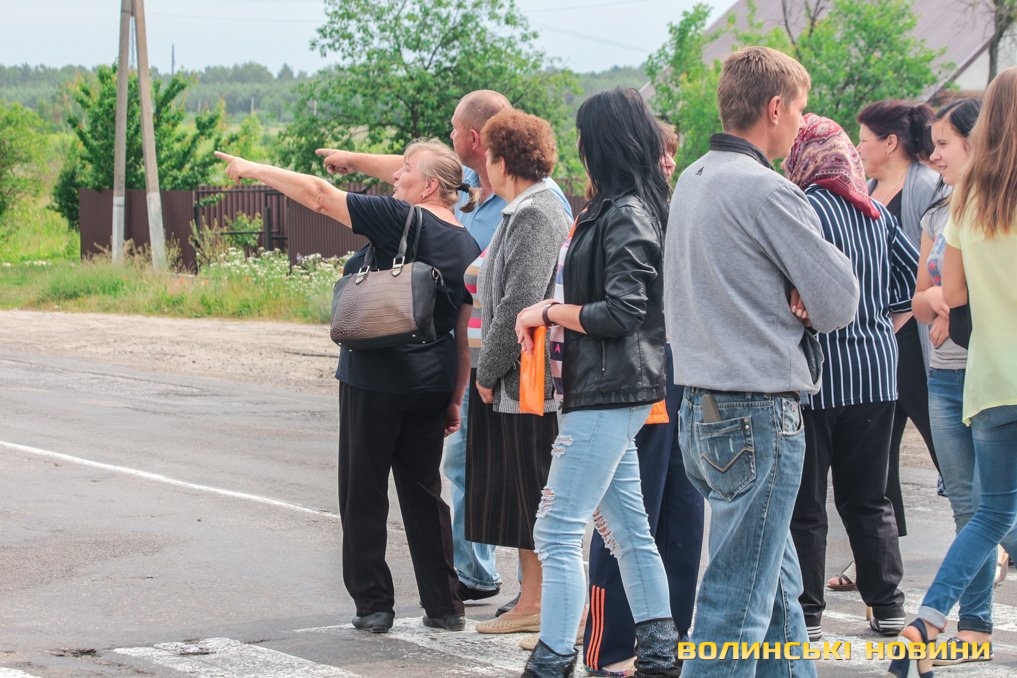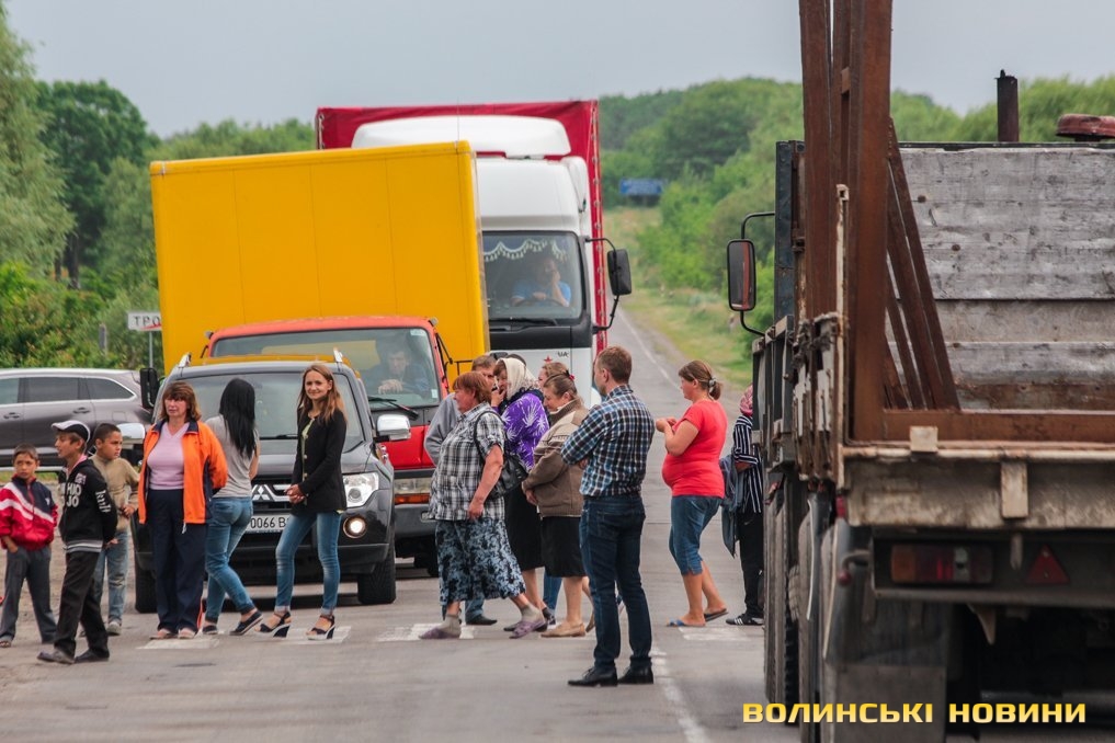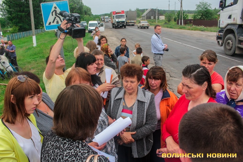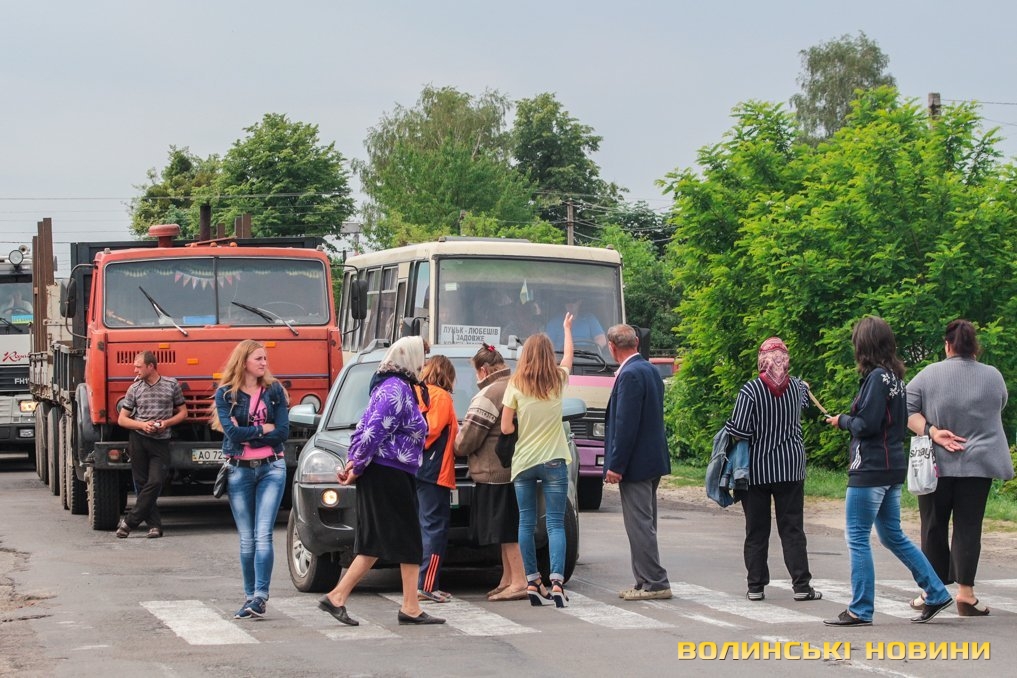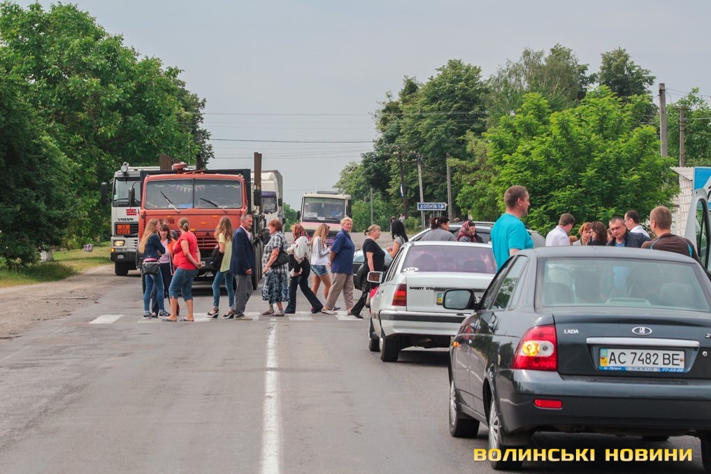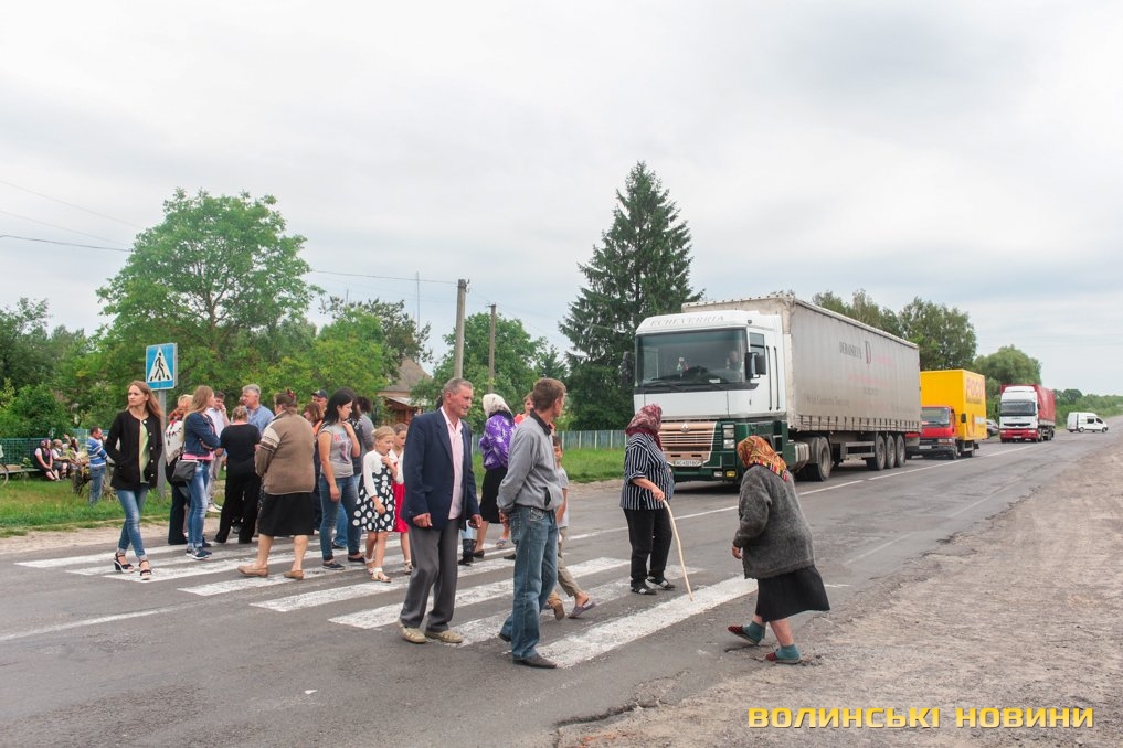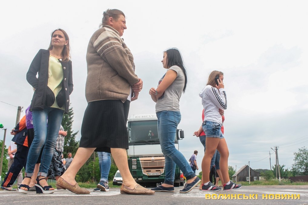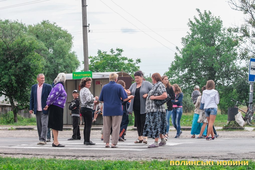 Зрештою, обурені люди перекрили дорогу, яка веде з Луцька на Маневичі. Селяни безупинно ходили пішохідним переходом, заблокувавши рух транспорту. Пропускали лише пасажирські автобуси та автомобілі, які їхали з дітьми.