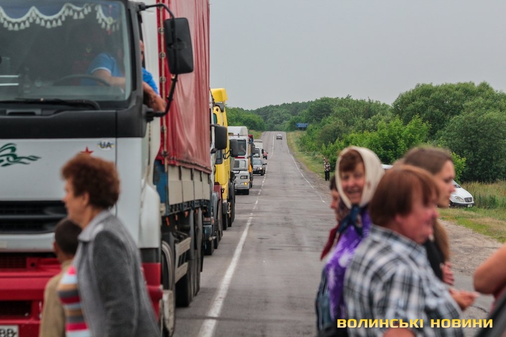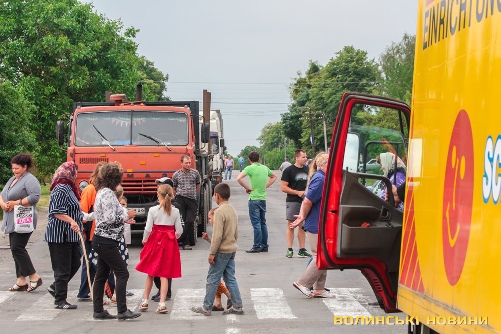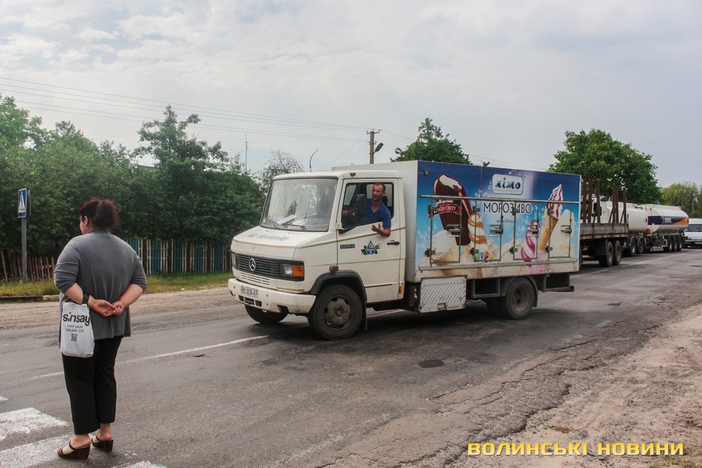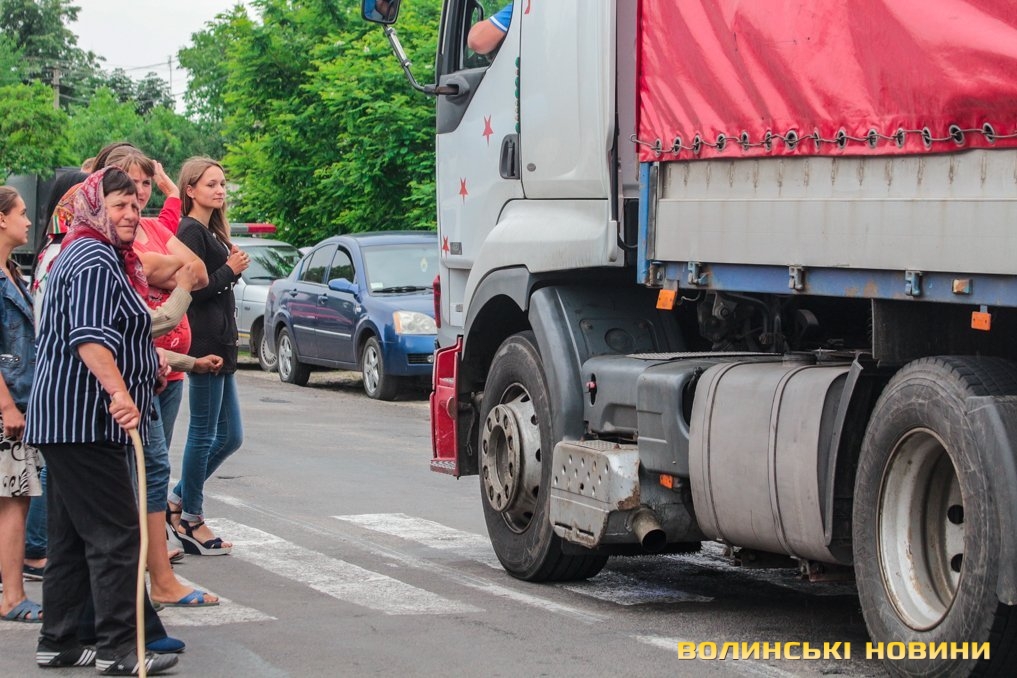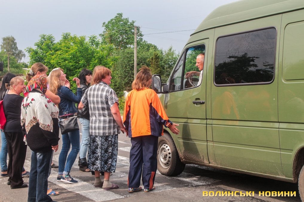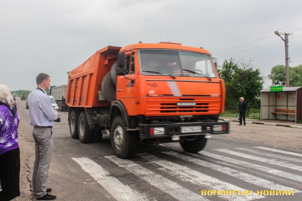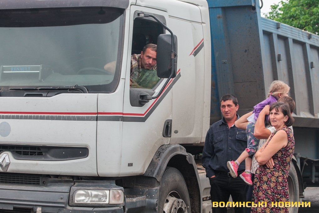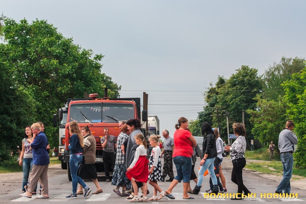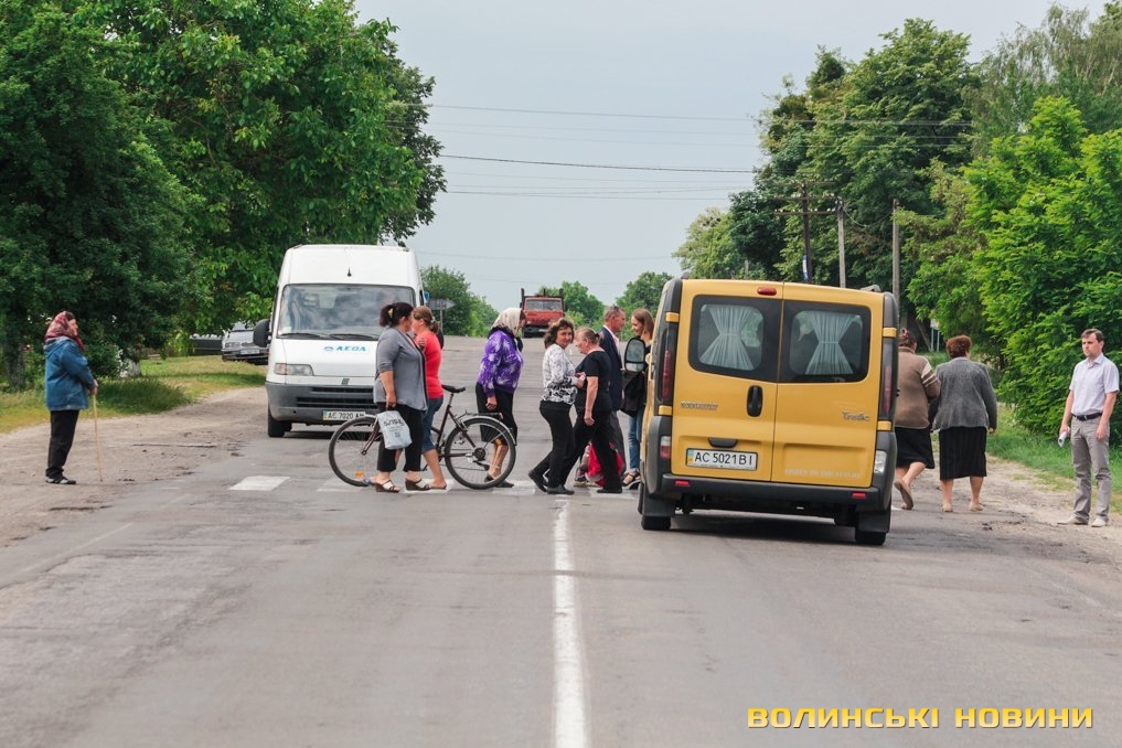Зрештою, обурені люди перекрили дорогу, яка веде з Луцька на Маневичі. Селяни безупинно ходили пішохідним переходом, заблокувавши рух транспорту. Пропускали лише пасажирські автобуси та автомобілі, які їхали з дітьми.