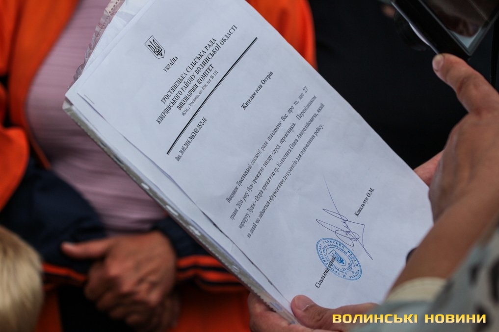 Депутат Волинської обласної ради Ірина Констанкевич, яка приїхала розібратися у ситуації, каже, що в селі живе чимало старших людей, які мають проблеми зі здоров’ям. Відтак, подолати 10 кілометрів пішки в два боки для них майже неможливо. На її думку, влада мала б посприяти вирішенню питання. Тим паче, що зробити це не так вже й важко.