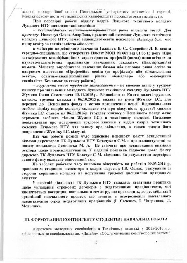 Директора луцького коледжу можуть притягнути до відповідальності. ДОКУМЕНТ