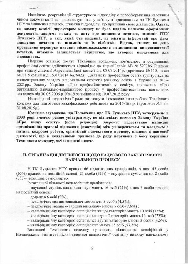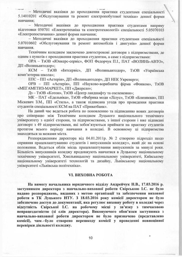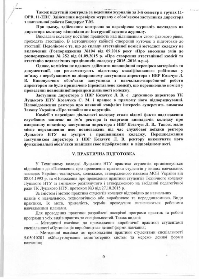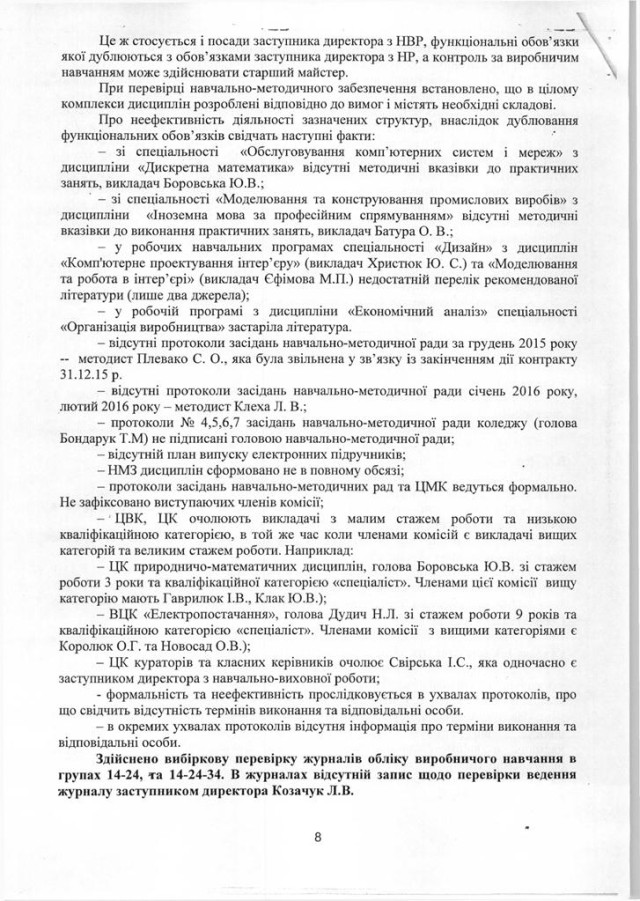Накінець сімейний бізнес і неправомірні справи дирекції закінчаться. Хороша перевірка і багато чого виявлено, але саме цікаво, дуже багато чого і не виявлено. Якби відкрити всі карти зразу, то за гратами треба було би садити і надовго все сімейство і їх спільників по корупції. Ще би перевірили особисті статки і звірили їх з доходами, я думаю там би було 80% поповнень сімейного бюджету з неба. Але це вже не в силах ректора, треба звертатись до прокуратури для більш детального розслідування.