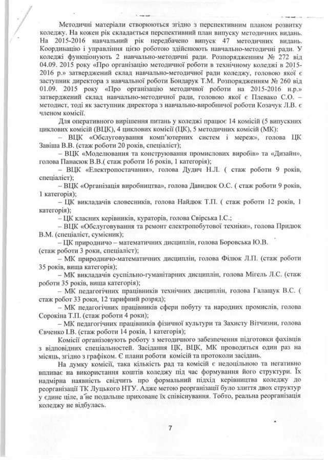 Відповідно до наказу ректора Луцького національного технічного університету Петра Савчука була здійснена перевірка ТК Луцького НТУ в контексті розгляду питання «Звіт директора Технічного коледжу Луцького НТУ Святослава Козачука про роботу з організації навчально-методичного, виховного процесу та завдання з їх покращення».