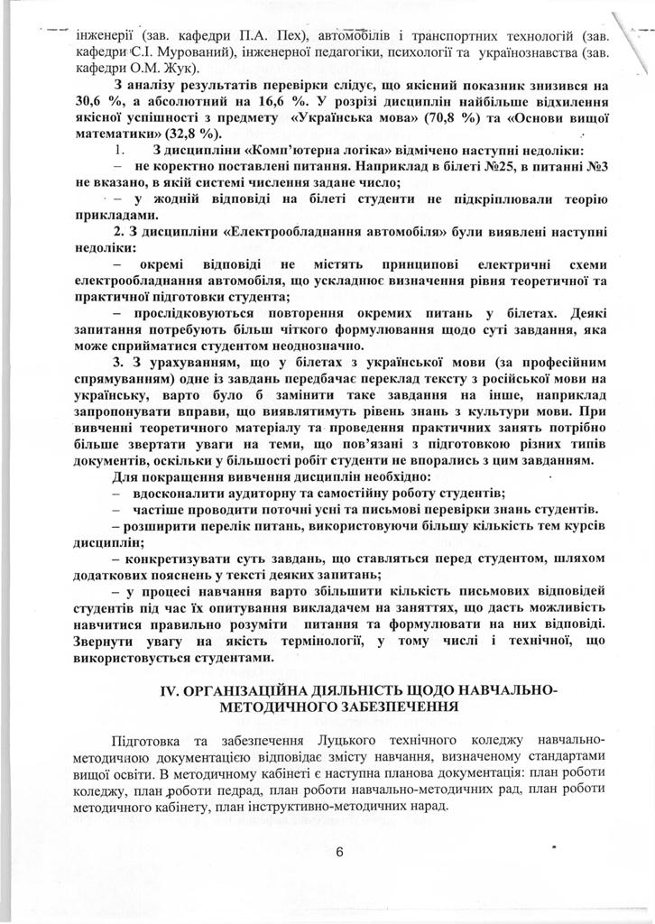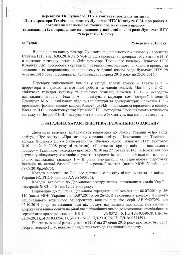 Відповідно до наказу ректора Луцького національного технічного університету Петра Савчука була здійснена перевірка ТК Луцького НТУ в контексті розгляду питання «Звіт директора Технічного коледжу Луцького НТУ Святослава Козачука про роботу з організації навчально-методичного, виховного процесу та завдання з їх покращення».