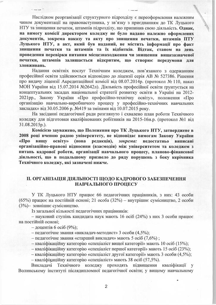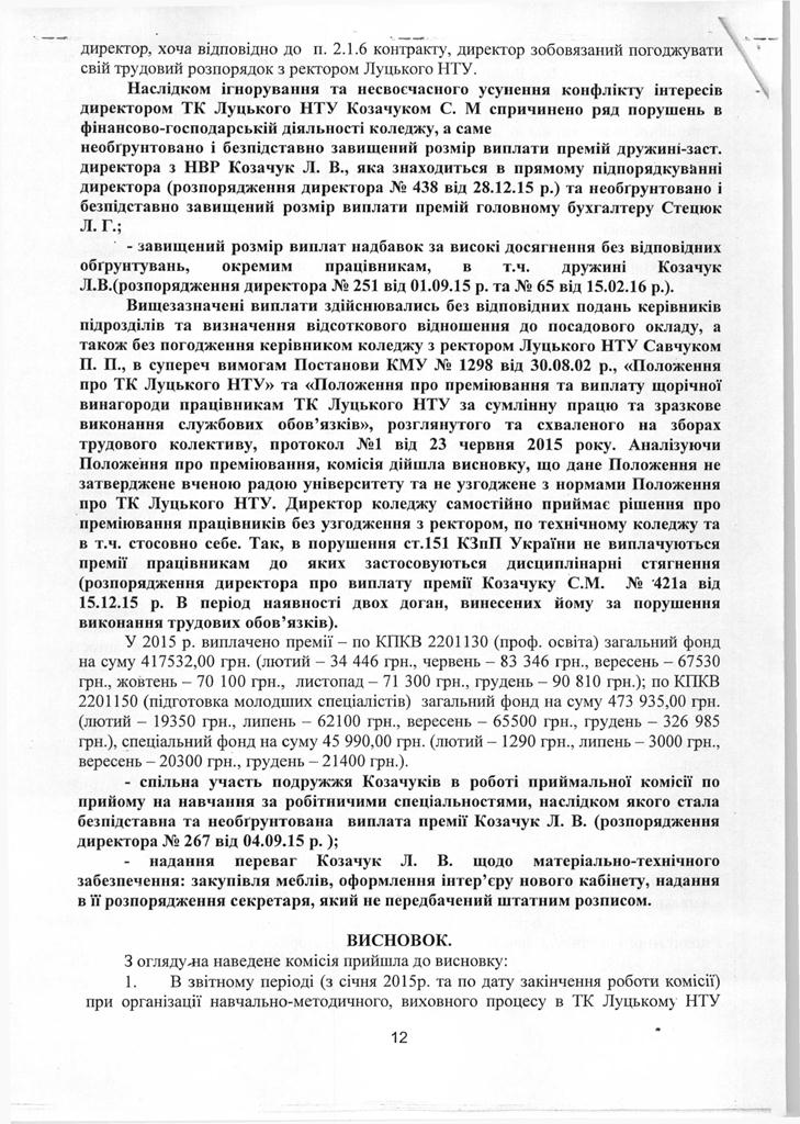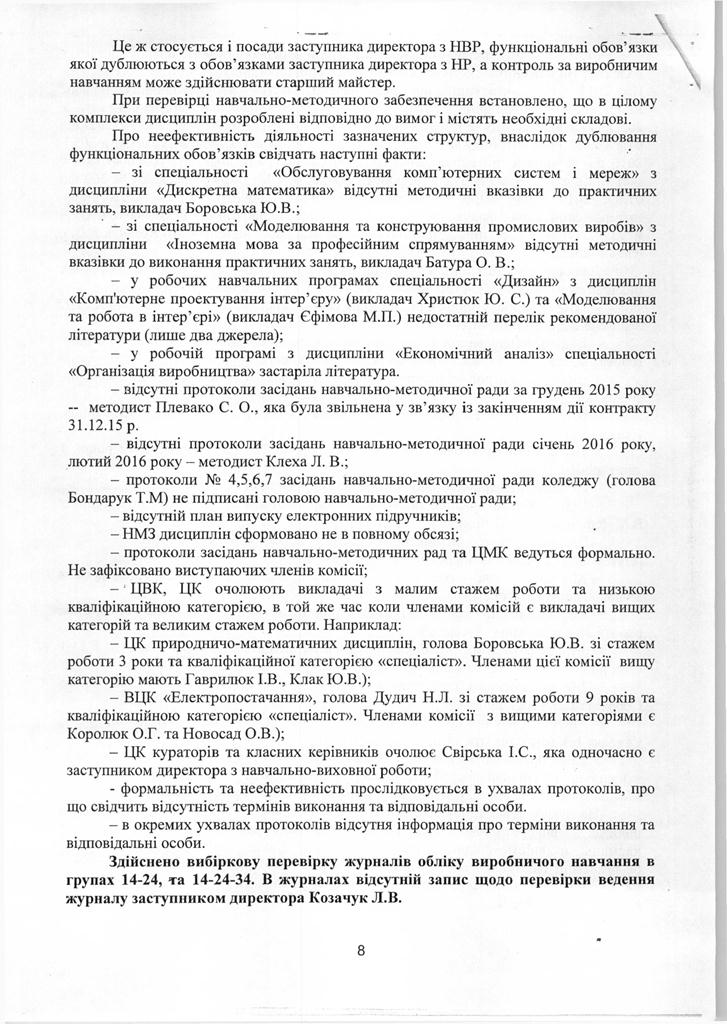 Накінець сімейний бізнес і неправомірні справи дирекції закінчаться. Хороша перевірка і багато чого виявлено, але саме цікаво, дуже багато чого і не виявлено. Якби відкрити всі карти зразу, то за гратами треба було би садити і надовго все сімейство і їх спільників по корупції. Ще би перевірили особисті статки і звірили їх з доходами, я думаю там би було 80% поповнень сімейного бюджету з неба. Але це вже не в силах ректора, треба звертатись до прокуратури для більш детального розслідування.