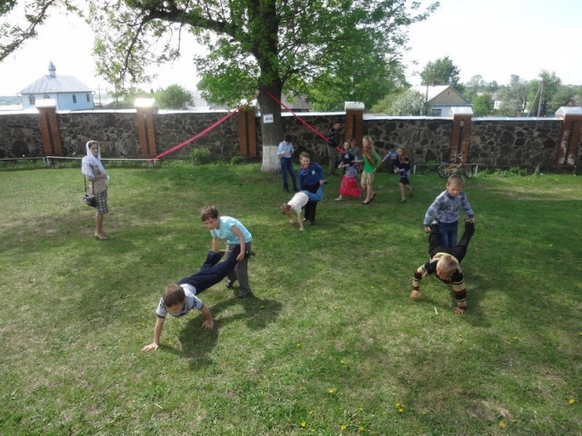 Після так званої офіційної частини діти мали змогу ближче познайомитись, поспілкуватись та позмагатись у пасхальних іграх, які організувала для усіх вихованців недільних шкіл братія Чарторийського монастиря.