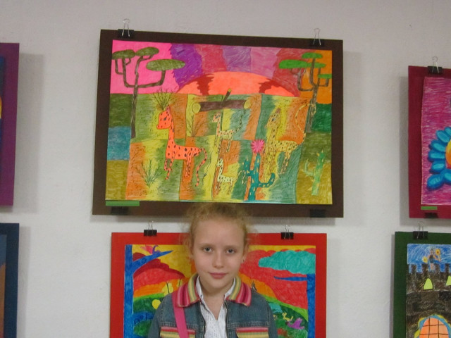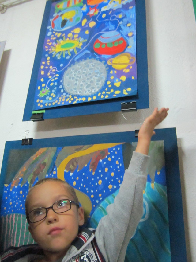 Сьогоднішнє дійство діти присвятили своїй Україні. На виставці було представлено більше 40 робіт. Малюнки дітей вражають своїми кольоровими відтінками, фантазією, дитячим сприйняттям світу в якому панує радість, яскравість і світло. Маленьким авторам всього лише 6 - 10 років.