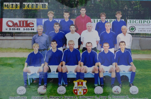 Ковельський "Колійник" 1994 року. Сергій Соботович присів третій ліворуч. Стоїть третій ліворуч - Віктор Мацюк ("Поділля", "Шахтар", "Закарпаття")