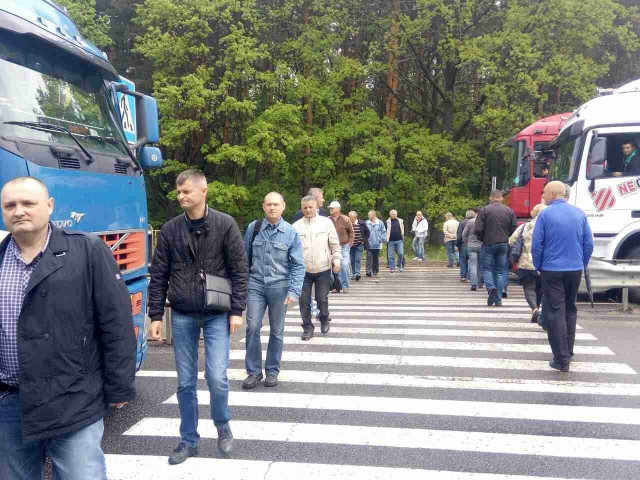 Тим часом черга збільшується, особливо із вантажних автомобілів, які своїми сигналами підіймають неймовірний шум в надії вплинути на протестувальників.