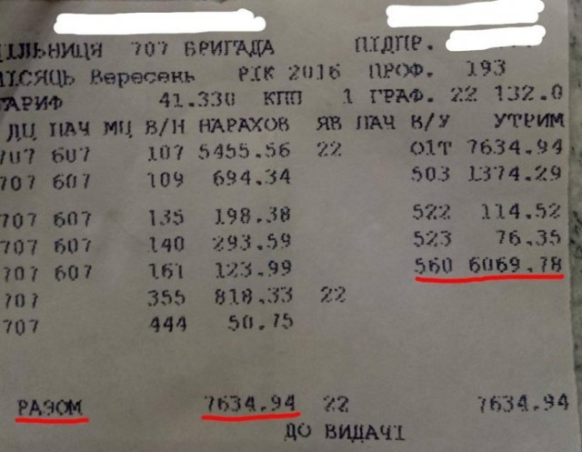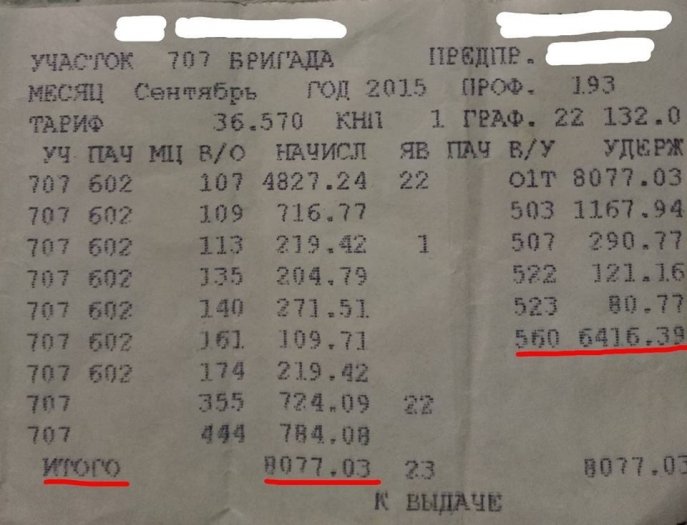 Він додав фото квитанцій щодо зарплати одного із гірників: