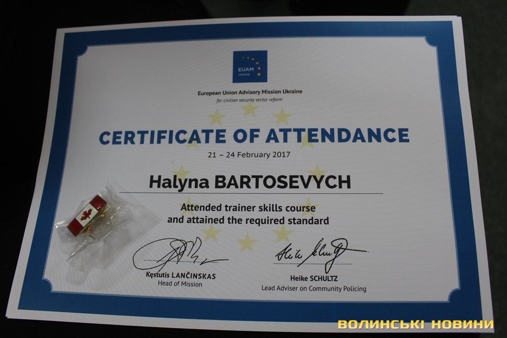 Сьогодні, 3 беоезня, на завершення проекту волинським поліцейським вручили сертифікати.