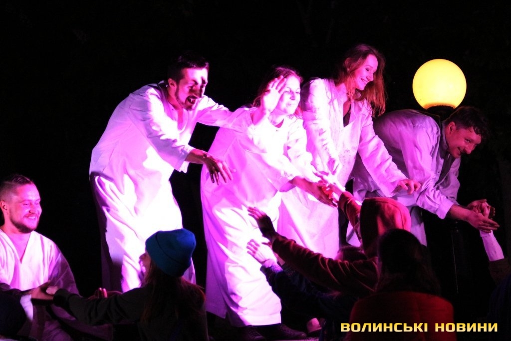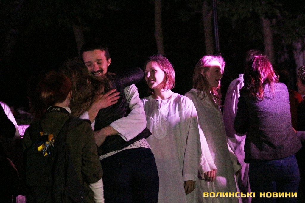 Ішов додому з ТЕатрального майдану з друзями й бачили це "дійство", одним словом -Жах. Почали ті артисти в білих ночнушках скакати по галявині, тягати возика з кавою, БЕЗВЕРБНИЙ З дівками обніматись, мацати їх за сіднички. Ми не проти коли в хлопця сексуал бажанння, але на публіці не варто так нестримувати себе. РЕшта з них під гитару почали горланити пісні для зівак й попивати винце в білих стаканчиках. Ось реальнт і пройшло дійство. Тому робімо висновки. Яка культура в ЛУцьку