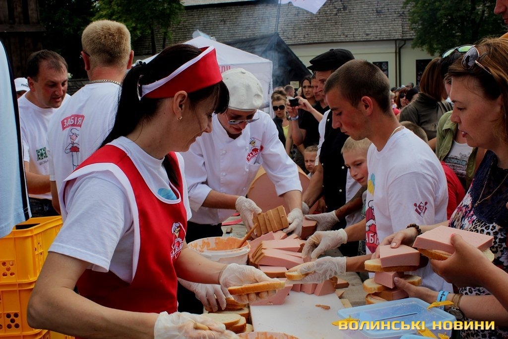 Зацікавила лучан і фіксація національного рекорду, адже під час фестивалю виготовили 5-метрову півтонну ковбасу, а представник Національного реєстру рекордів вручила лучанам відповідний сертифікат.