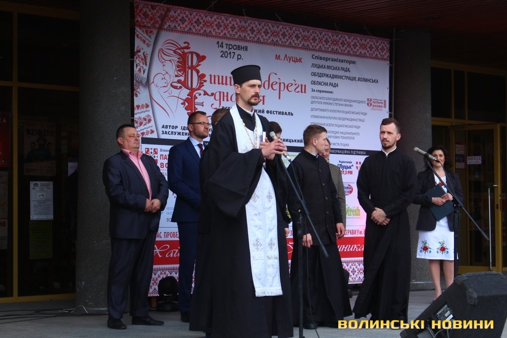 Перед початком заходу директор недільної школи при Свято-Троїцькому кафедральному соборі, ієрей Сергій Медведєв благословив присутніх та прочитав молитву. Також священик нагадав, що під час фестивалю відбувається збір коштів на будівництво церкви у Волновасі, та закликав усіх небайдужих людей допомогти хто чим може.«У цей пасхальний унікальний період в житті церкви, в житті нашої держави, коли ми славимо Хреста, але водночас сумуємо через події на сході України, ми маємо унікальну традицію на нашій рідній волинській землі, коли ми вшановуємо мам, які народили для нас героїв, які захищали нашу земну Батьківщину і захищають нині. Багатьох героїв ми провели у вічність, але сьогодні ми молимося та прохаємо у Бога, щоб він подарував нам спокійне майбутнє, благодатне українське небо. Ми сьогодні піднімаємо очі своїх сердець до небесної мами», – сказав голова просвітницького відділу Волинської єпархії УПЦ, протоієрей Валентин Марчук.
