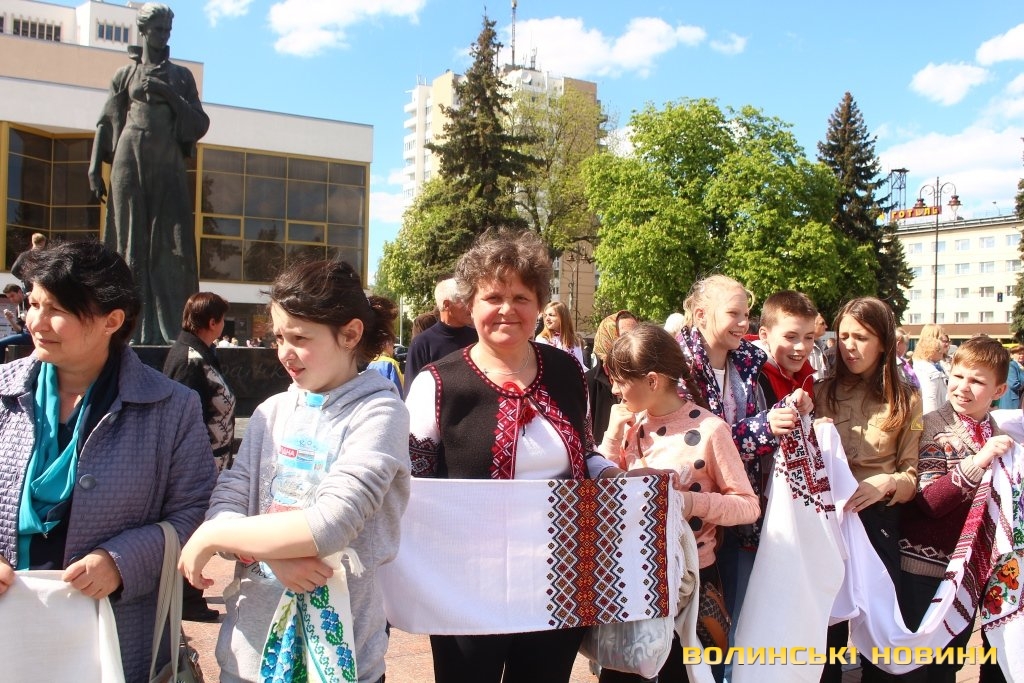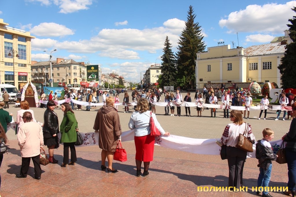 У другу неділю травня, на День матері, лучани традиційно зібралися на Театральному майдані, аби поєднатися вишитими рушниками. Акція «Рушник єднання» вже увосьме відбувається в обласному центрі Волині.