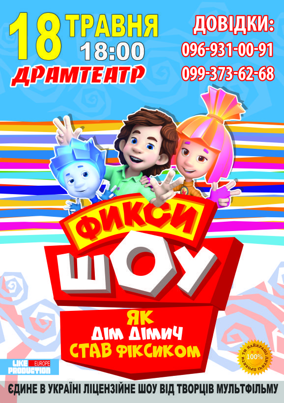 Оригінальну дитячу виставу «Фіксі-ШОУ!» за мотивами анімаційного серіалу «ФІКСИКІ» від творців мультфільму незабаром покажуть у Луцьку.