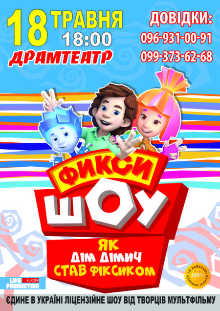 Під час показу «Фіксі-ШОУ» діти зможуть на власні очі побачити улюблених героїв. Це інтерактивна вистава-«хепенінг»: вона дозволить кожній дитині взяти участь у дивовижних пригодах Фіксиків прямо під час вистави. Кожен малюк виявиться долученим до дійства і відчує себе потрібним і незамінним. Допоможуть і завзяті фіксіпелки, які можна співати усім залом.
