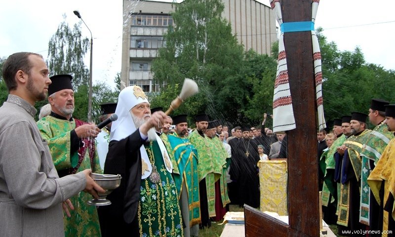 У перший день Святої Трійці в Луцьк прибув патріарх Київський та всієї Руси-України Філарет – він освятив місце під будівництво нового храму на вулиці Ветеранів.