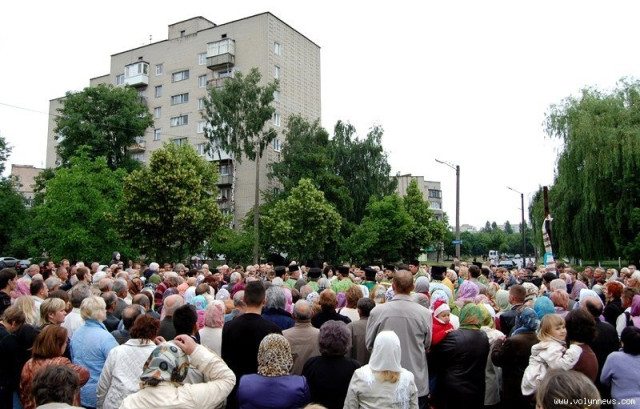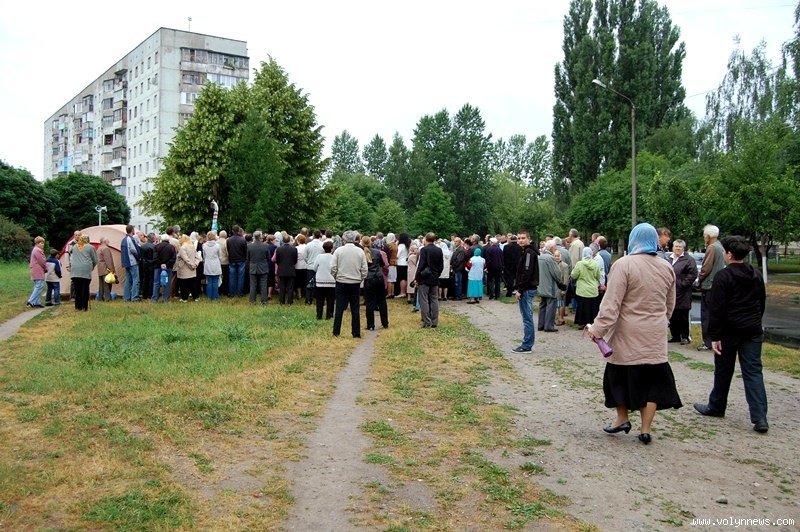 На подію у неділю, 12 червня, прийшло кількасот лучан – переважно мешканців мікрорайону, у якому зводитимуть церкву.