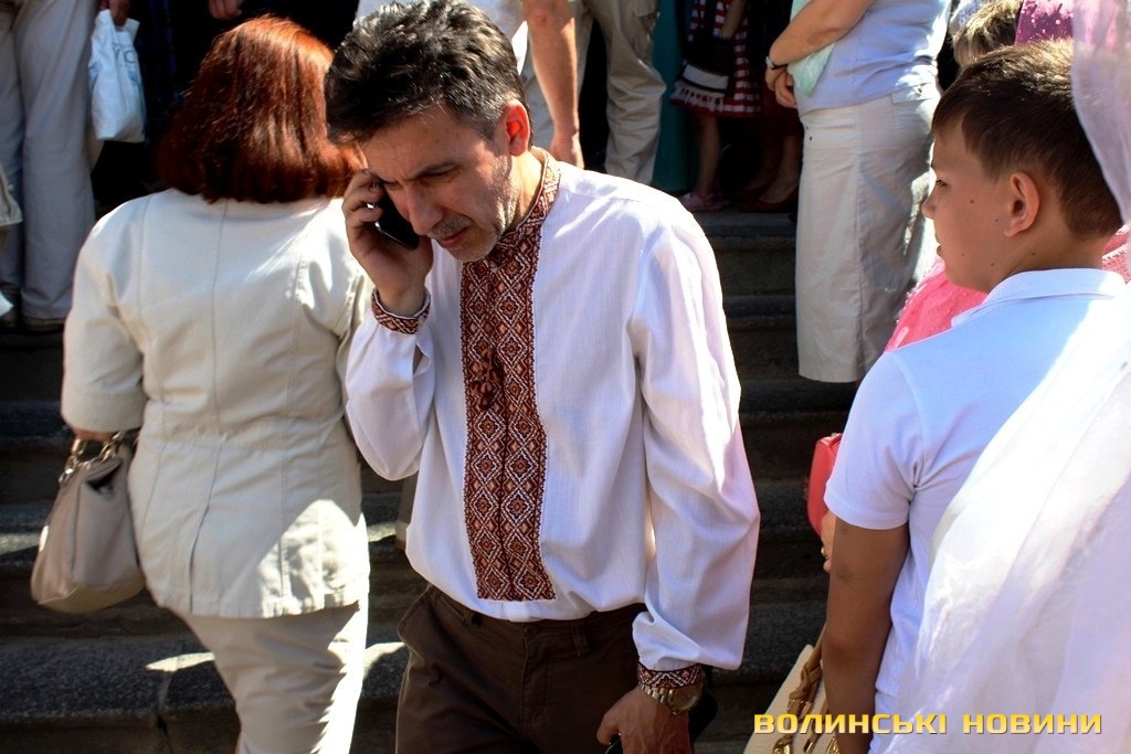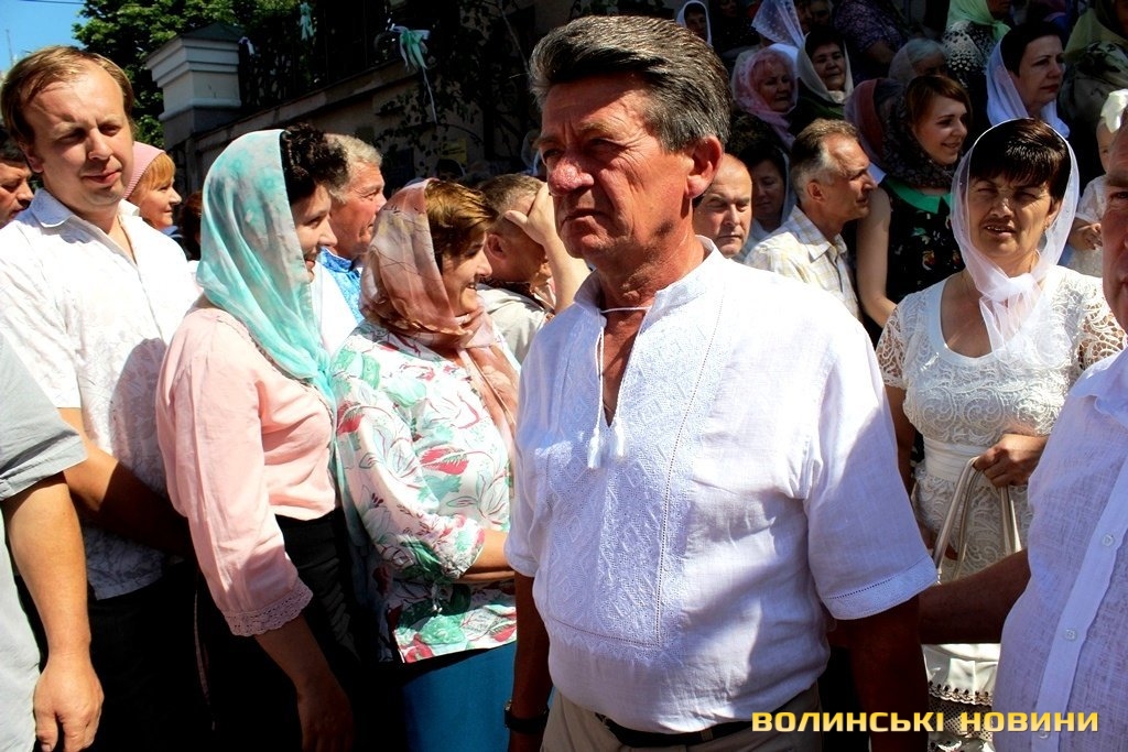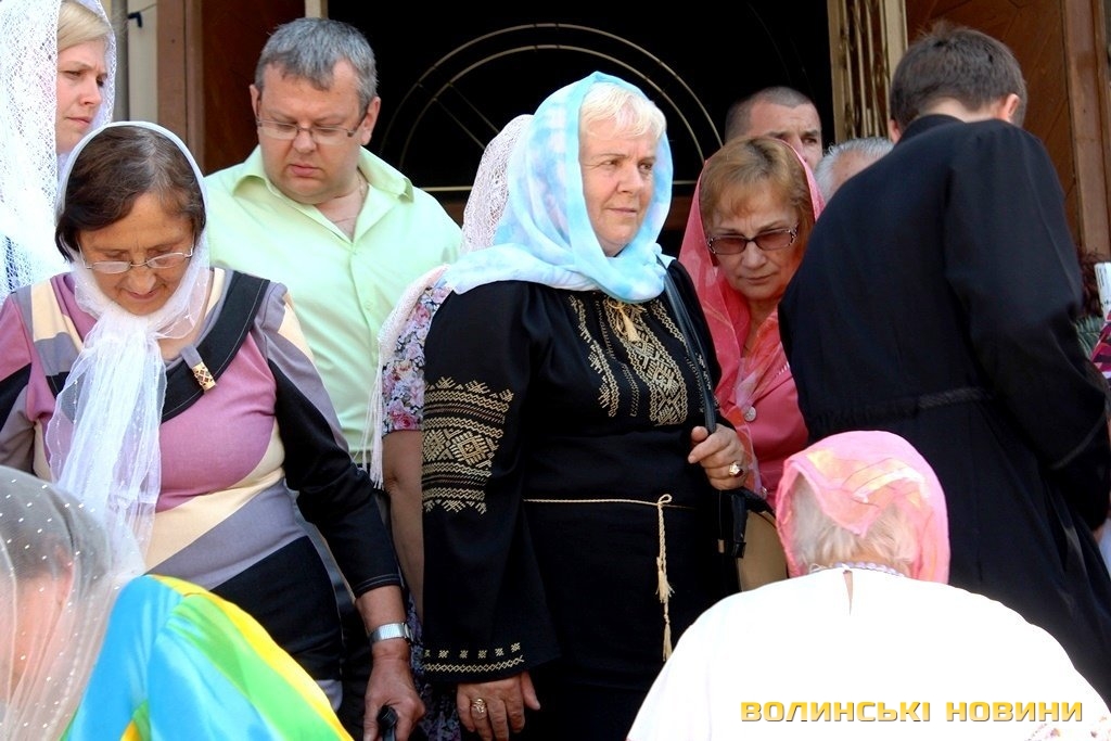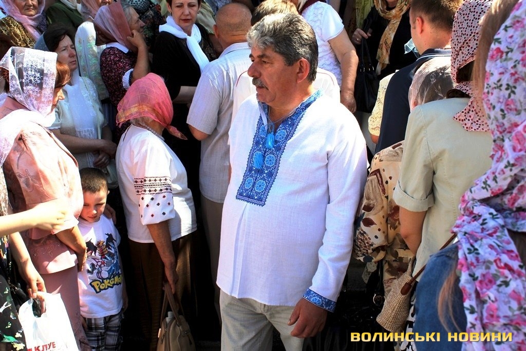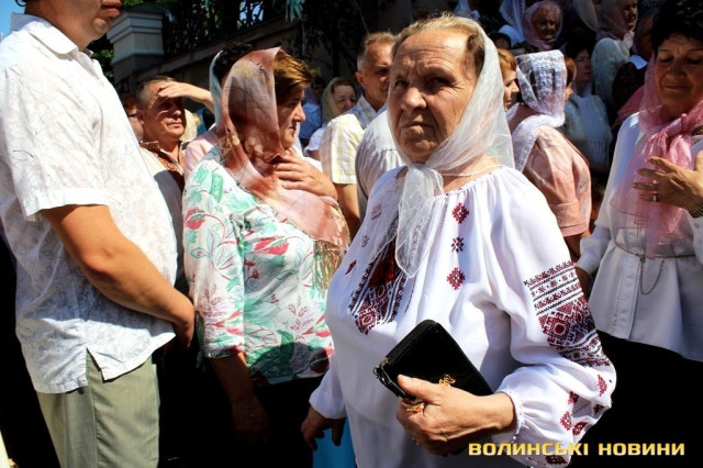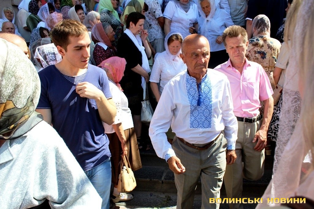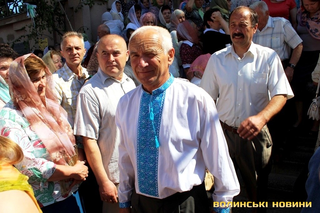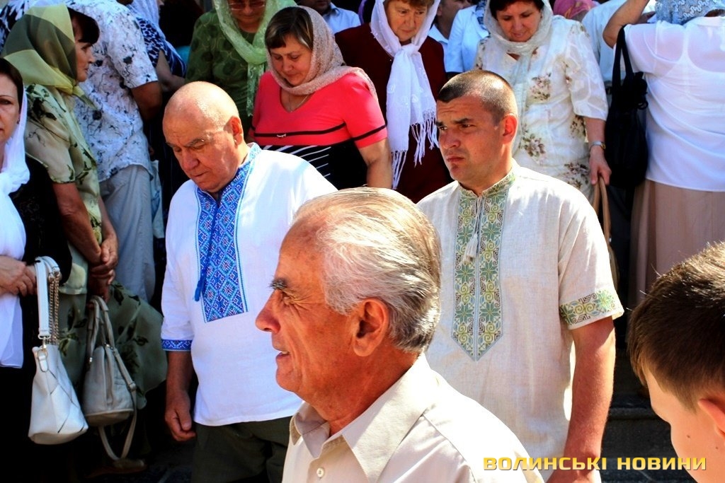 Сотні лучан були одягнені у вишиванки під час святкового богослужіння - як чоловіки, так і жінки. У національному вбранні люди зустрічали Патріарха Київського і всієї Руси-України Філарета.