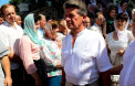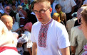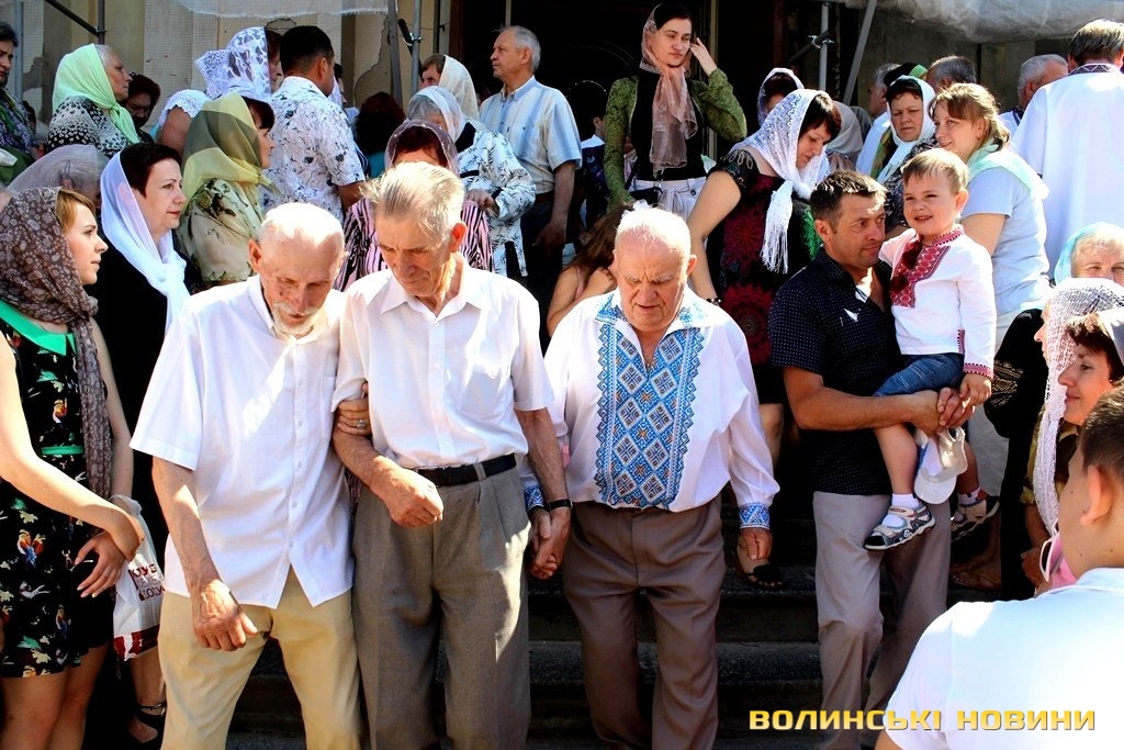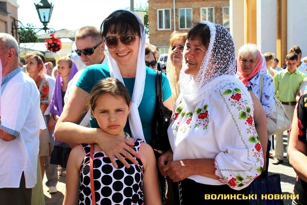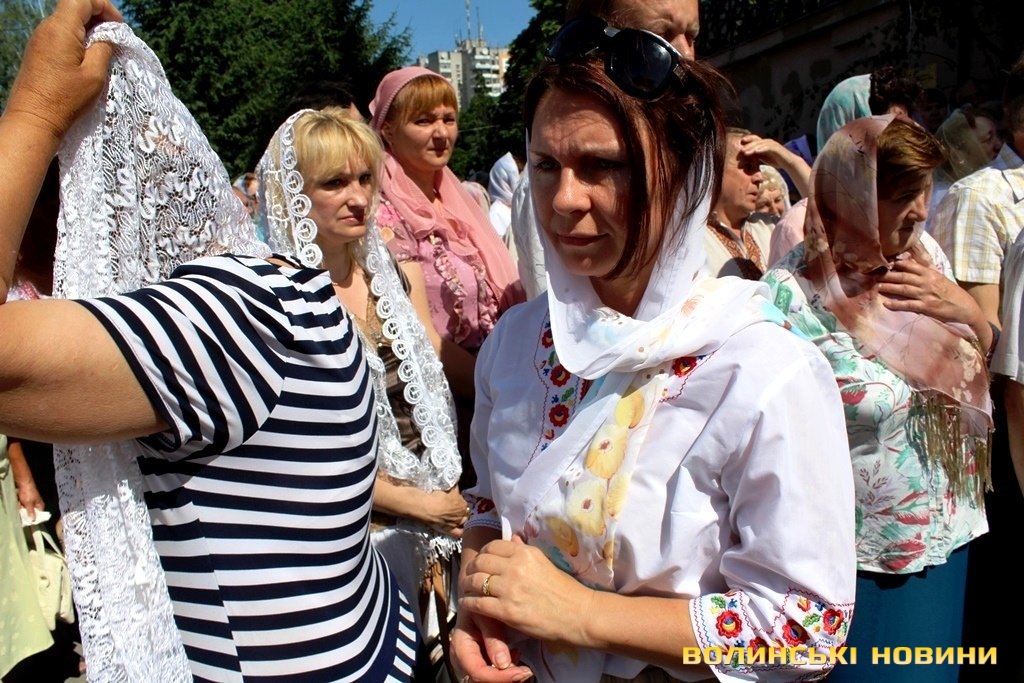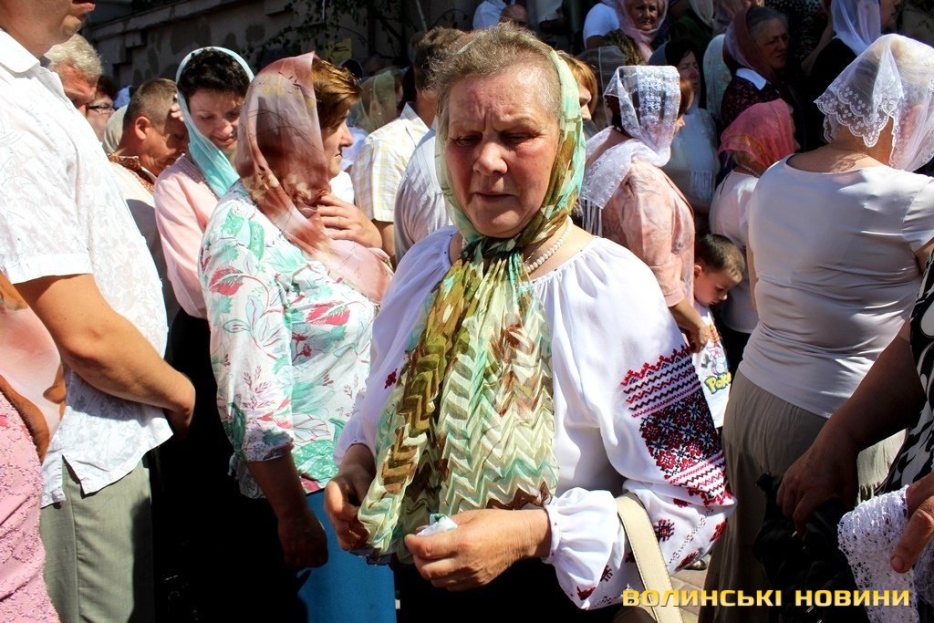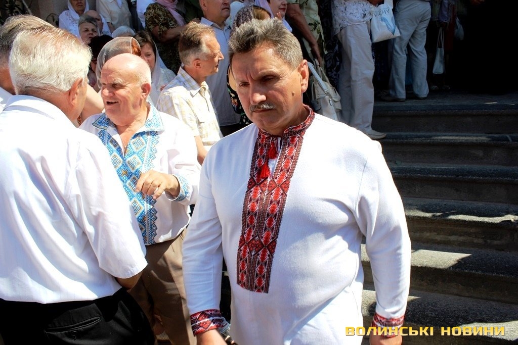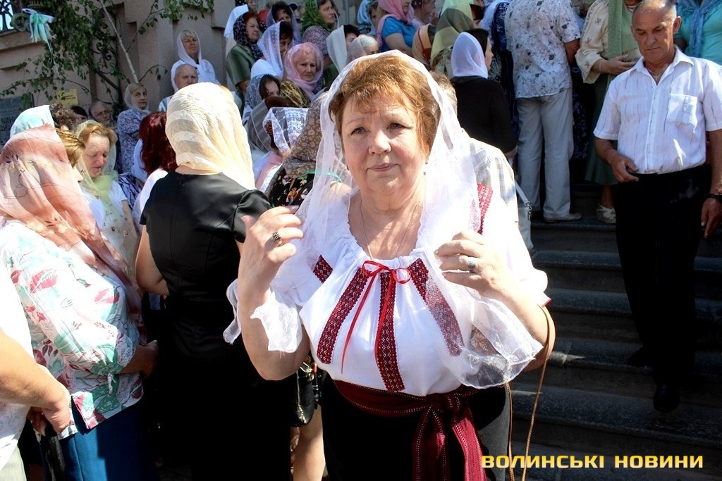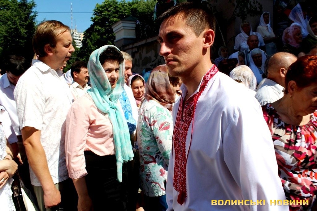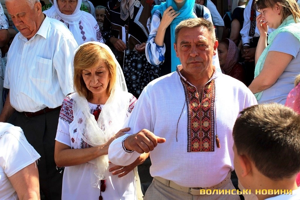 Сотні лучан були одягнені у вишиванки під час святкового богослужіння - як чоловіки, так і жінки. У національному вбранні люди зустрічали Патріарха Київського і всієї Руси-України Філарета.
