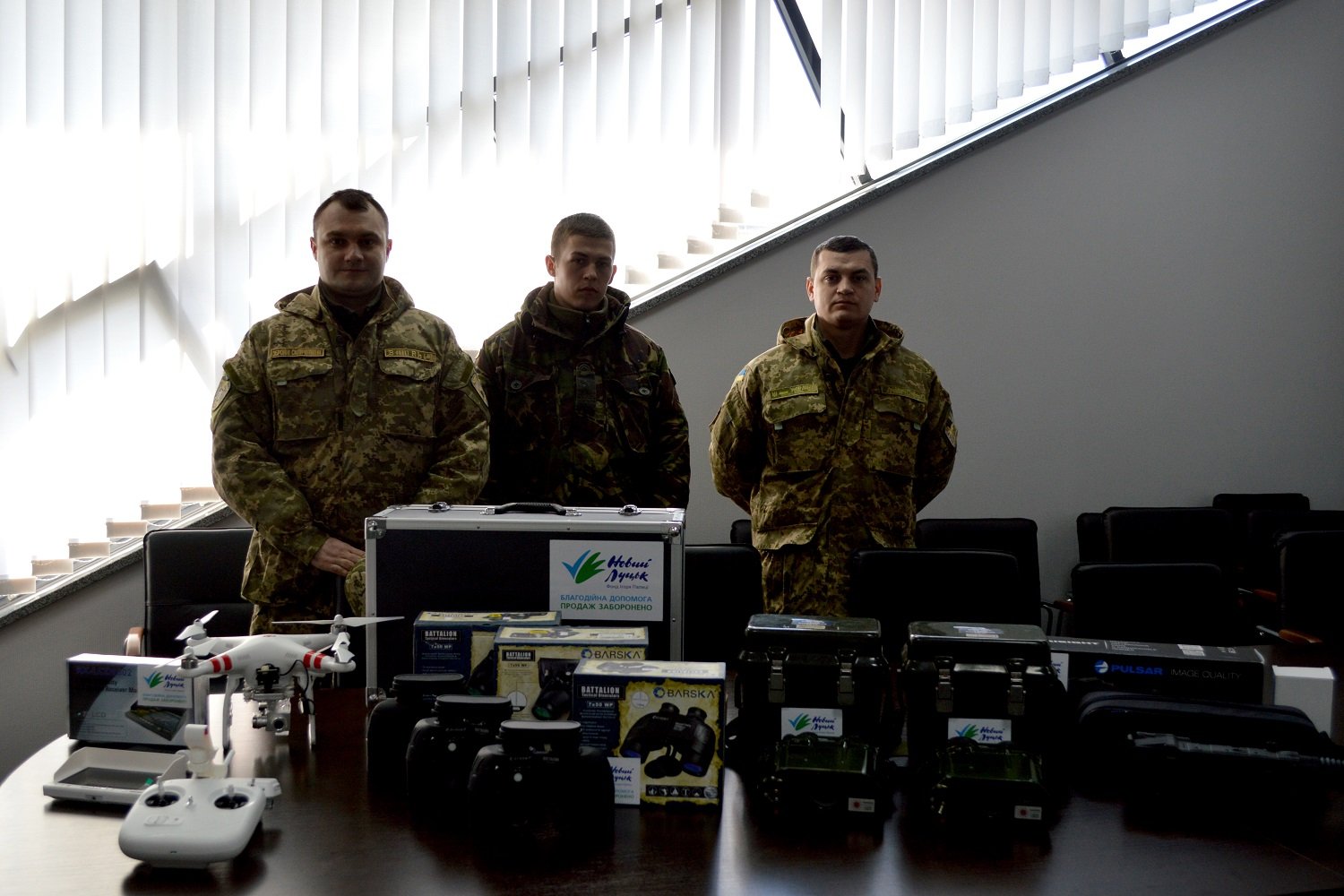 Сьогодні, 18 березня, командиру взводу розвідроти 14 ОМБР, лейтенанту Сергію Мисанюку голова правління Фонду «Новий Луцьк» Олександр Товстенюк та голова правління ГФ «Варти порядку» Олександр Тиводар передали біноклі, прилади нічного бачення, квадрокоптер (БПЛА), приціл оптичний, лазерні ручні дальноміри та іншу необхідну техніку на суму понад 130 тисяч гривень.