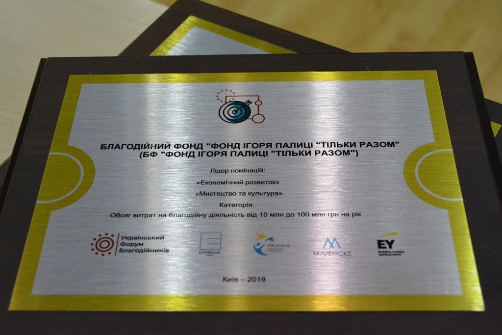 Одним із переможців шостого Національного рейтингу благодійників України став Фонд Ігоря Палиці «Тільки разом». Урочиста церемонія нагородження Національного рейтингу благодійників відбулася 1 листопада у Києві.