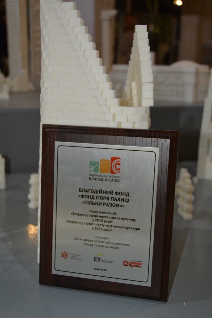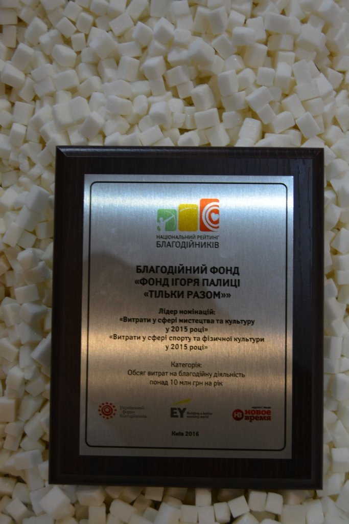 Так, напередодні Дня європейських благодійних фондів, який відзначається 1 жовтня, стали відомі імена переможців ІІІ Національного рейтингу благодійників серед українських фондів за підсумками 2015 року. Фонд Ігоря Палиці «Тільки разом» став лідером у трьох номінаціях: за інвестиціями у «розвиток спорту і фізичної культури», «розвиток освіти і науки», а також «розвиток мистецтва та культури».