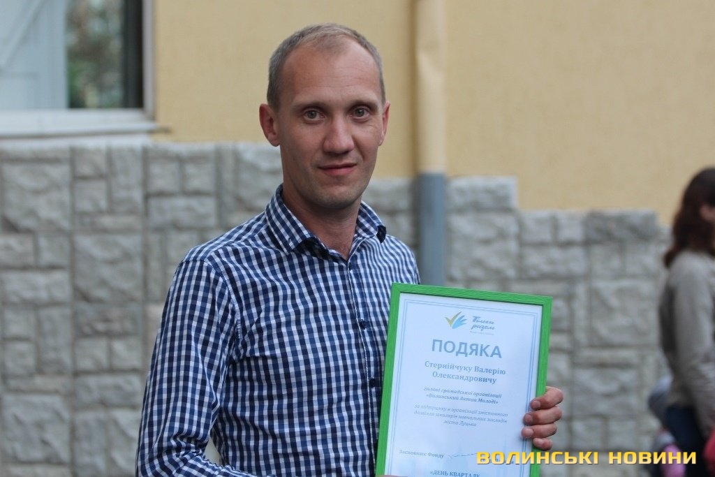 «Робота з молоддю – одна з головних сфер у суспільстві, на ній потрібно зосереджувати сили. Необхідно допомагати молодим людям знаходити себе, самореалізовувати, розкривати свій потенціал. Тому нам було дуже приємно долучитися до свята «День кварталу», - говорить Стернійчуку.Нагороди отримали: Мороз Марія Хомівна, Гунько Наталія Володимирівна, Цьось Уляна Анатоліївна, Рожко Яна Юріївна, Мушка Віталій Григорович, Береза Оксана Володимирівна, колектив приватного акціонерного товариства «Едельвіка» в особі голови правління Переходько Юрія Анатолійовича, Балицький Сергій Іванович, Безпятко Юрій Володимирович, генеральний директор ПрАТ «Луцький домобудівельний комбінат» Вайман Руслан Олексійович, Ничай Костянтин Петрович, Міщук Олександр Олександрович, директор книгарні «Руніка» Лазарєва Руслана Миколаївна, Стернійчук Валерій Олександрович, Оліда Оксана Миколаївна, Жупанюк Володимир Григорович, Михалусь Олександр Володимирович, Журавльова Наталія Миколаївна, Жаловага Олександр Степанович, Кацевич Володимир Костянтинович, Денисюк Оксана Богданівна, Дікарєва Олена Олексіївна.Опісля нагородження троє щасливчиків ще й стали власниками новесеньких смартфона, планшета та велосипеда.