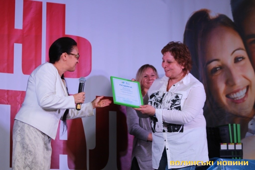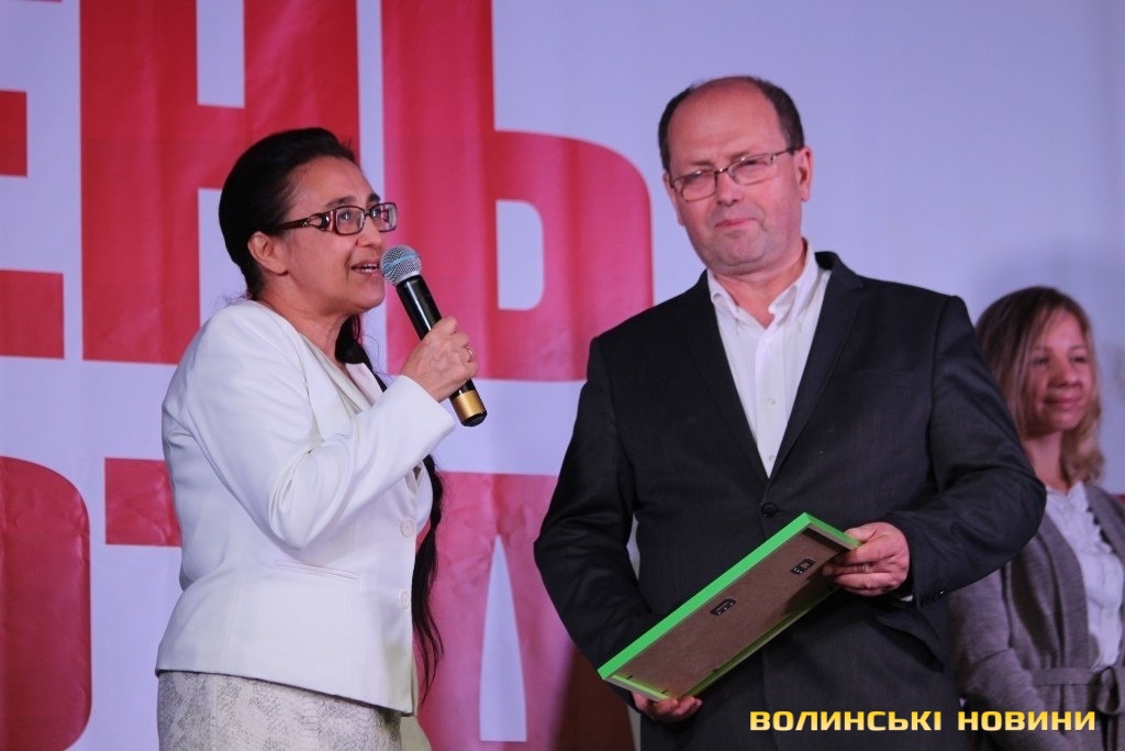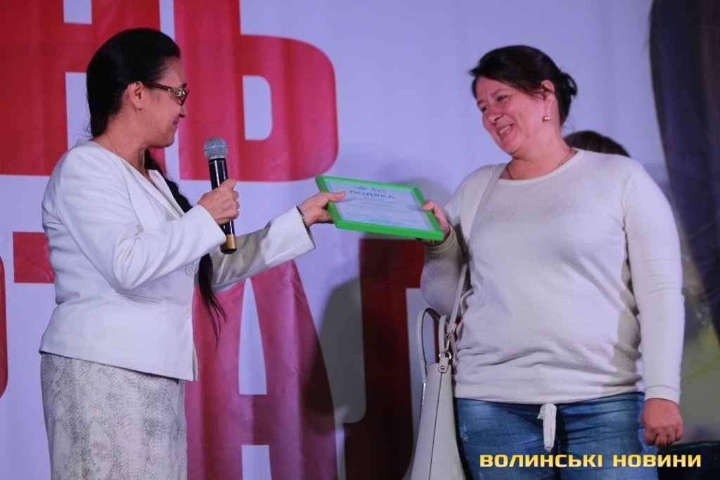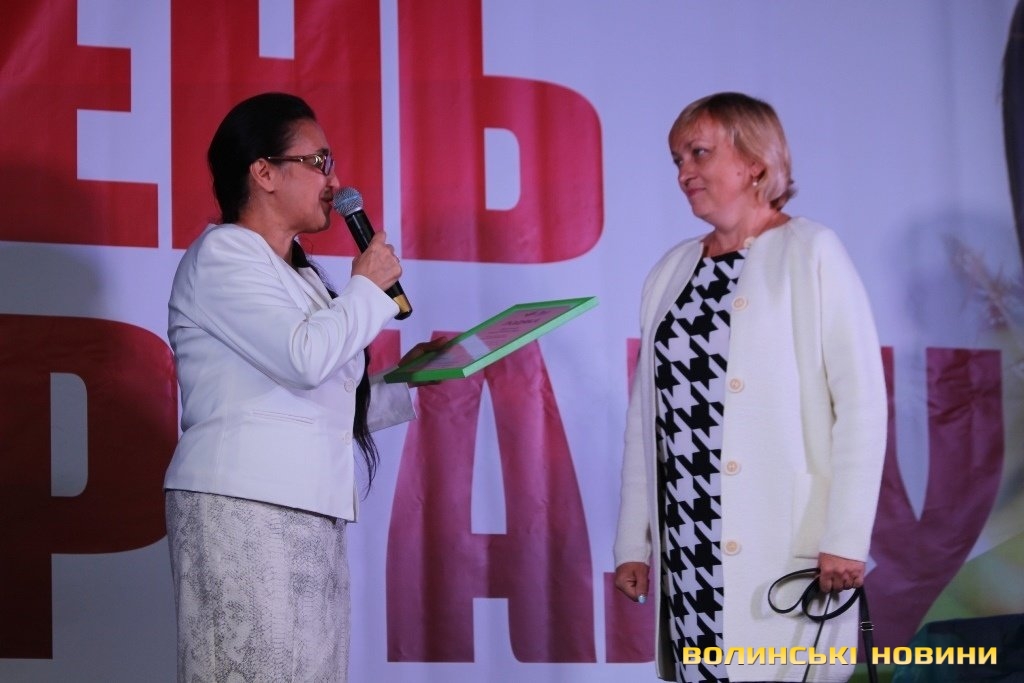 Першою для нагородження на сцену вийшла директорка Луцької загальноосвітньої школи І- II ступенів №11 – колегіум Марія Мороз.