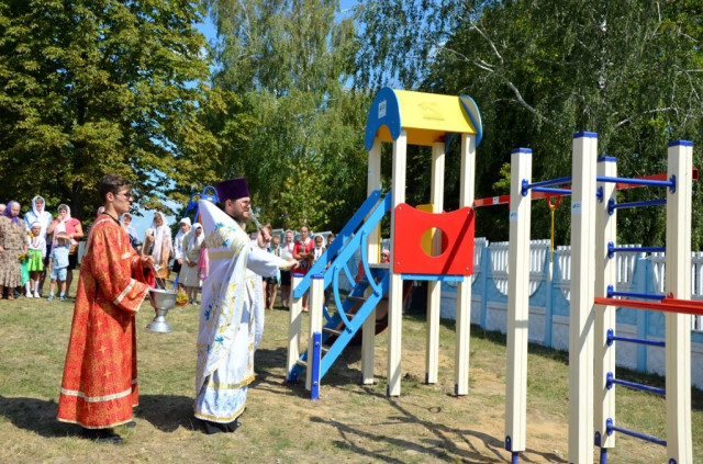 У день Яблучного Спаса у Топільному відкрили майданчик. Після хресного ходу та посвяти святкових кошиків, настоятель храму свяченою водою окропив ігрові споруди.