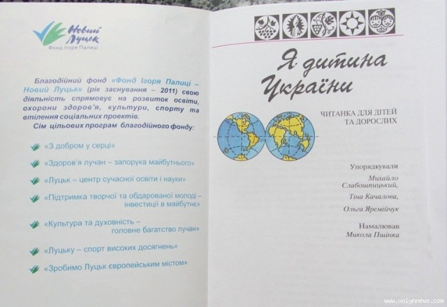 Усім першокласникам Луцька на початку нового навчального року за кошти благодійного фонду «Фонд Ігоря Палиці – Новий Луцьк» придбано читанку для дітей і дорослих «Я дитина України».