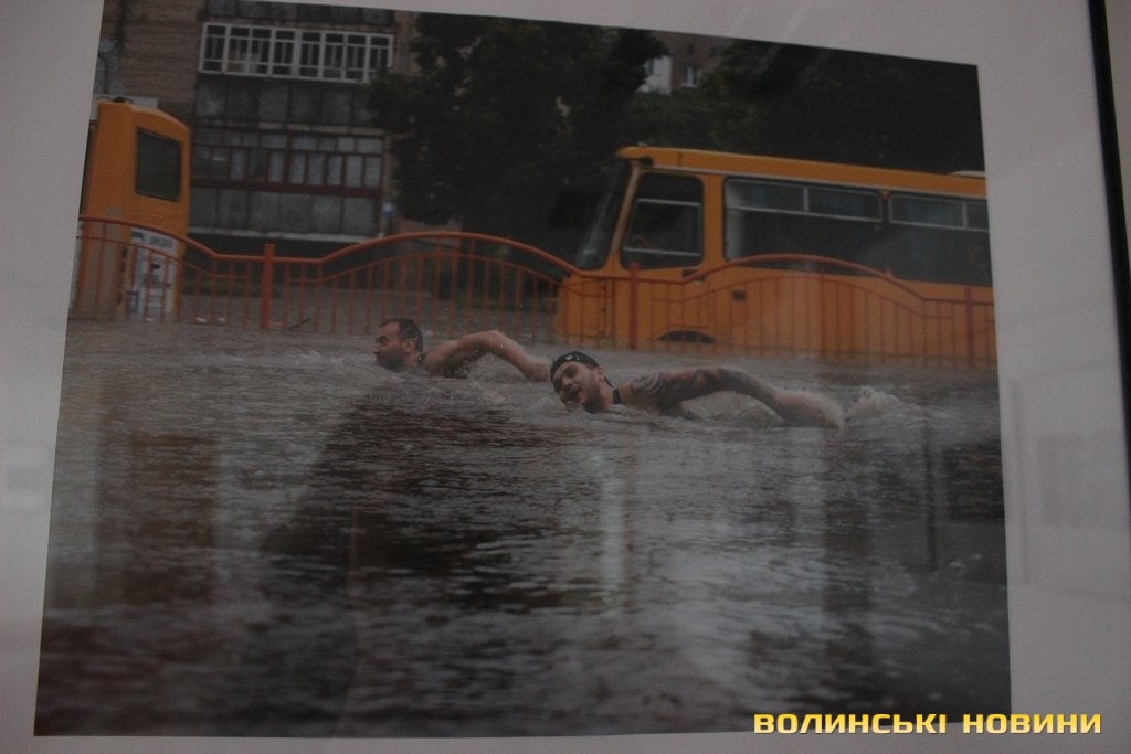 XV Міжнародна фотовиставка газети «День» залишила в усіх відвідувачів незабутні відчуття. З-поміж учасників є й роботи волинських фотографів. Зокрема, фото чоловіків, які зробили «заплив» проспектом Соборності під час зливи минулого року.