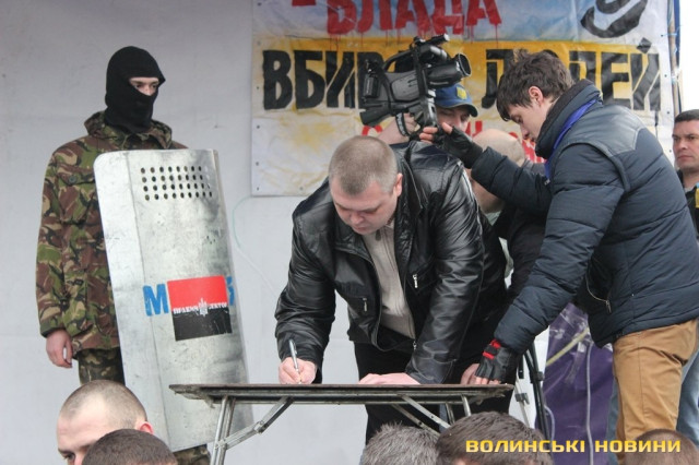 Я був сам присутнім як він особисто казав що вони всі їдуть до Києва до побратимів, бо у Луцьку війна закінчилась. А воно (по іншому не можу назвати) -з маленької букви, так і не поїхав.НЕ хай данильчук стане на коліна перед лучанами та вибачиться за те що він зрадив активістам, які знаходились та гинули у Києві, в час як він просто злякався, як зрадник, поїхати до Києва на їх підтримку. Лучани та Волиняни, будь-ласка свої емоції в сторони і проаналізуйте всі дії Данильчука за цей весь час, де що він коли обіцяв та говорив. Він користується нами як стадом баранів. Зрадник він, а не міліціонери. За весь час міліція у луцьку ні кого не тронула.