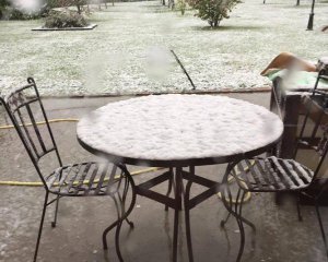 Вчора була гроза з градом та ураганним вітром. Користувачі показували наслідки руйнувань. На одному із відео - потрощені паркани та інше майно. З вечора і до сьогодні користувачі викладають в мережу відео, де зелені французькі газони та пальми замітає снігом.