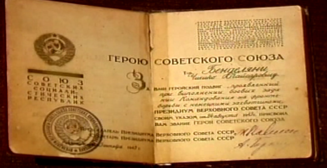За ці героїчні подвиги Указом Президіума Верховної Ради СРСР від 24-го серпня 1943 року гвардії майора Чічіко Кайсаровича Бенделіані нагородили найвищою державною нагородою – званням Героя Радянського Союзу із врученням ордена Леніна і медалі «Золота Зірка» (медаль № 1741). На фото – унікальні скани нагородних документів з Центрального Архіву Міністерства Оборони у місті Подольськ Московської області, в яких вказано, що гвардії майору Бенделіані присвоїли звання Героя Радянського Союзу; також є фото його свідоцтва про нагородження медаллю «Золота Зірка».