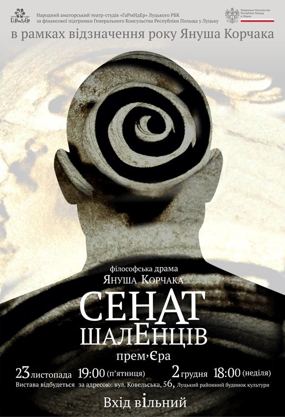 У п’ятницю, 23 листопада, о 18:00 у Луцькому районному будинку культури, що по вулиці Ковельська, 56, відбудеться прем’єра драми Януша Корчака «Сенат шаленців».