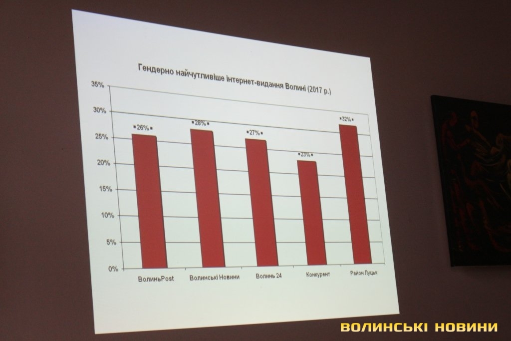 Відзначимо, що, відповідно до результатів проекту «Гендерний простір сучасної журналістики: від теорії до практики», Інформаційне агентство Волинські Новини зайняло другу сходинку за рівнем гендерної чутливості серед найрейтинговіших онлайн-ресурсів області.