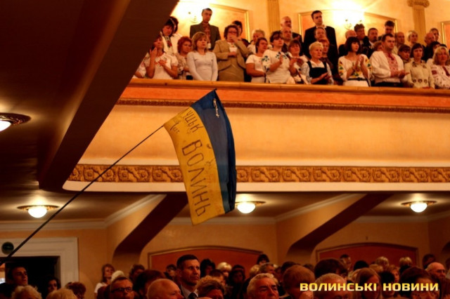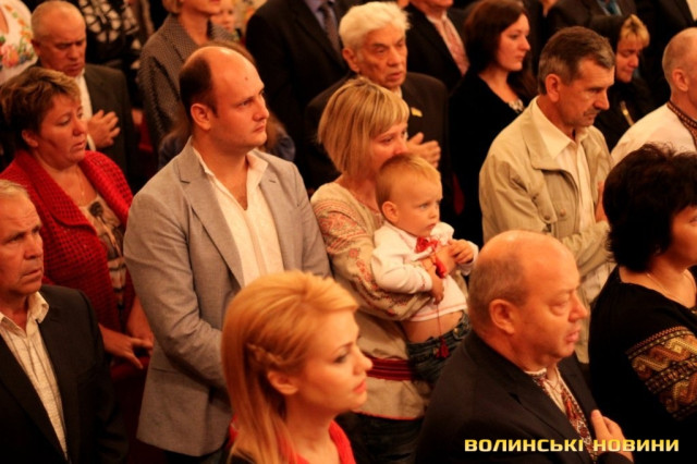 Вручення відзнаки батьку героя-волинянина відбулося під гучні оплески учасників віча та під звуки пісні «Ой, у лузі червона калина похилилася».