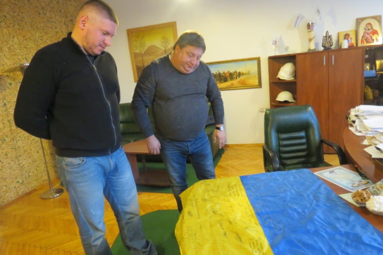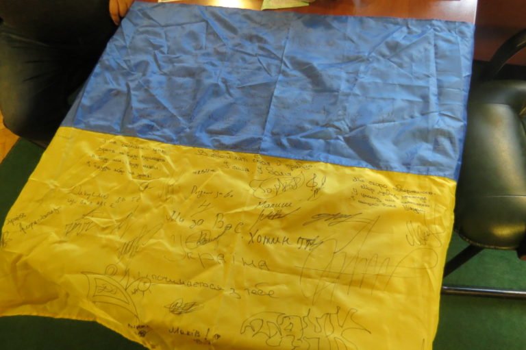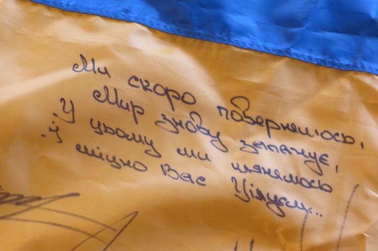 Також Ростислав Новосад показав те, найцінніше, що він отримав від наших захисників – український прапор із словами подяки та найщирішими побажаннями.