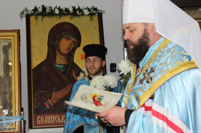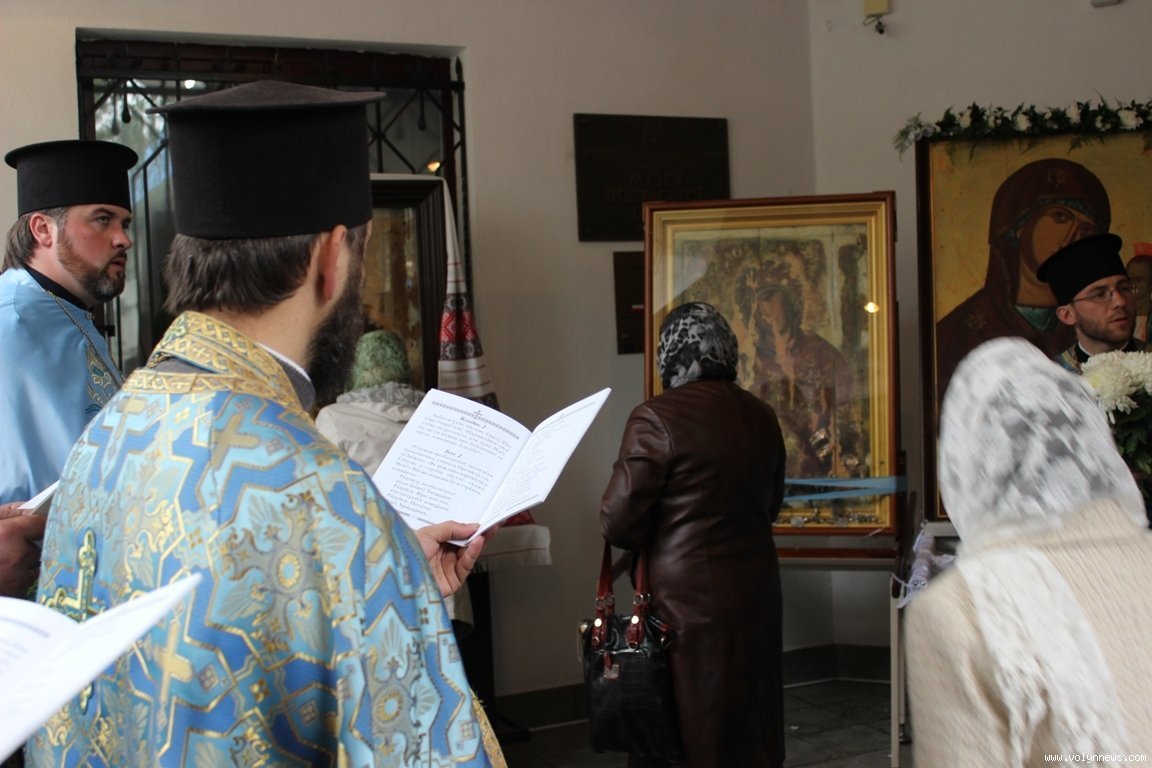 У музеї перед образами Богоматері митрополит Михаїл з іншими священиками волинської єпархії Київського патріархату відслужили акафіст Пречистій. Під час піснеспівів віряни підходили до ікон і просили для себе благодаті Божої.