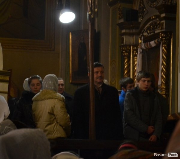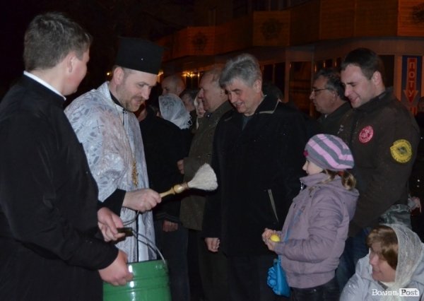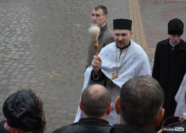 Привітати мешканців міста прийшов Луцький міський голова Микола Романюк, який звернувся до них, стоячи поруч з митрополитом Михаїлом, який вів службу.