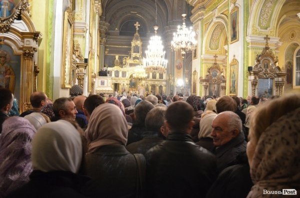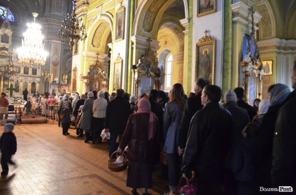 Освячувати їжу до святкового столу у Луцькому Свято-Троїцькому соборі почали ще у суботній вечір 14 квітня.