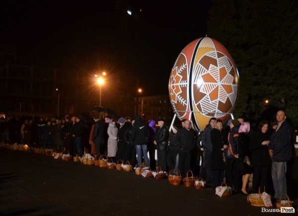 Зважаючи на це, священнослужителі наголошували, аби прихожани починали частуватися їжею лише після четвертої ранку наступного дня. Саме в той час закінчується Божественна літургія, присвячена Великодню. Посвятити їжу увечері лучанам не завадив дощ, який не припинився повністю і вночі. До своїх кошиків мешканці міста клали мʼясні продукти, паски, крашанки, вино, сіль.
