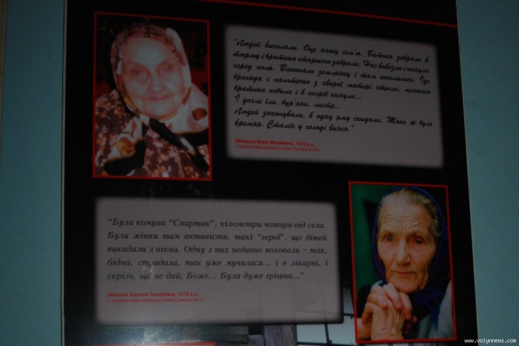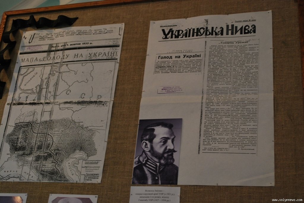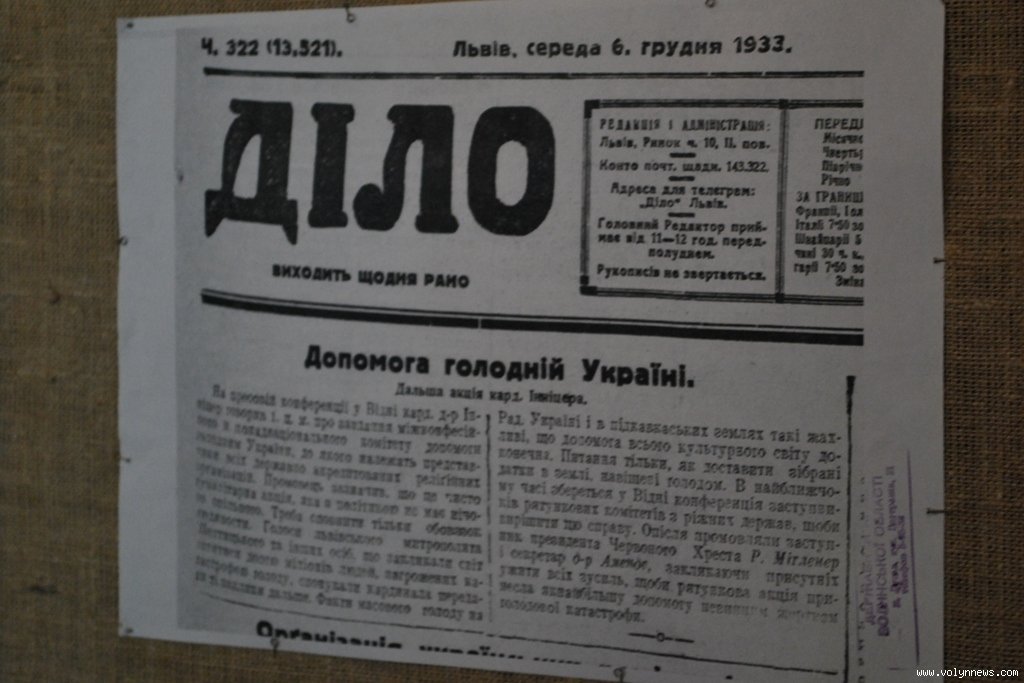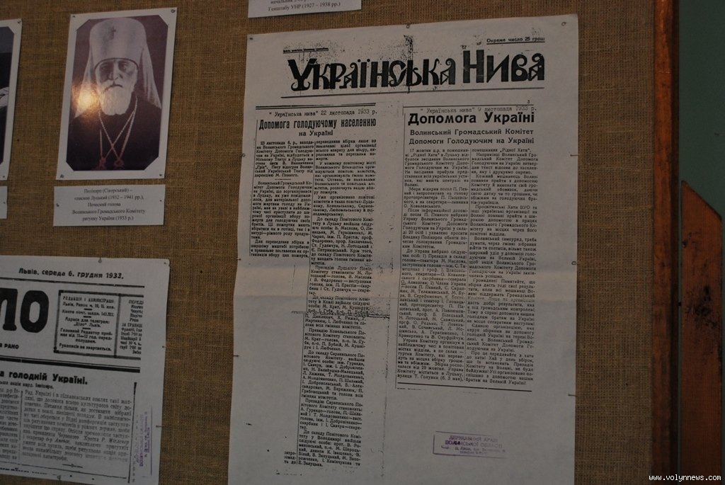 «Виставку ми доповнили документами, які є в розпорядженні музею. Зокрема, видання «Українська нива», газета «Діло» висвітлюють, що волиняни знали про трагедію, інформація просочувалася, вони хотіли допомогти, навіть організували комітет допомоги голодуючим. Є протоколи зборів, рішення які комітет приймав. До цього долучилися усі свідомі місцеві організації: Червоний Хрест, «Українська хата», духовенство. Але, на жаль, ця допомога не доходила до адресатів», розповідає Валентина Мишлай.