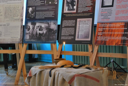Відвідувачі виставки змогли побачити фотокопії документів, Чорну книгу України, письмові спогади очевидців. Присутні вшанували жертв Голодомору хвилиною мовчання і запаленою свічкою.