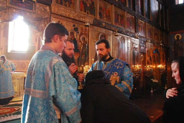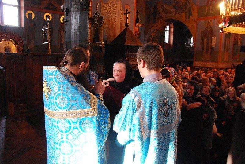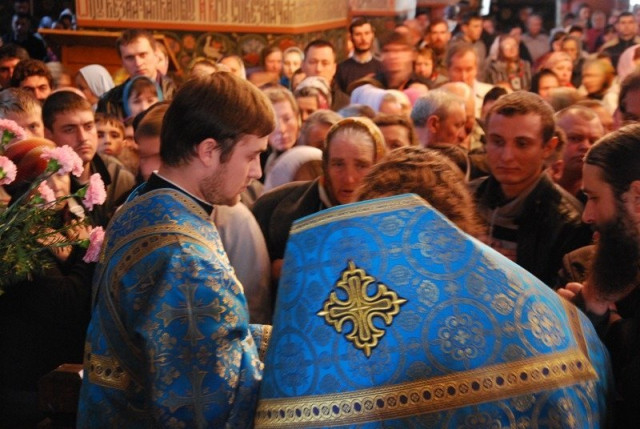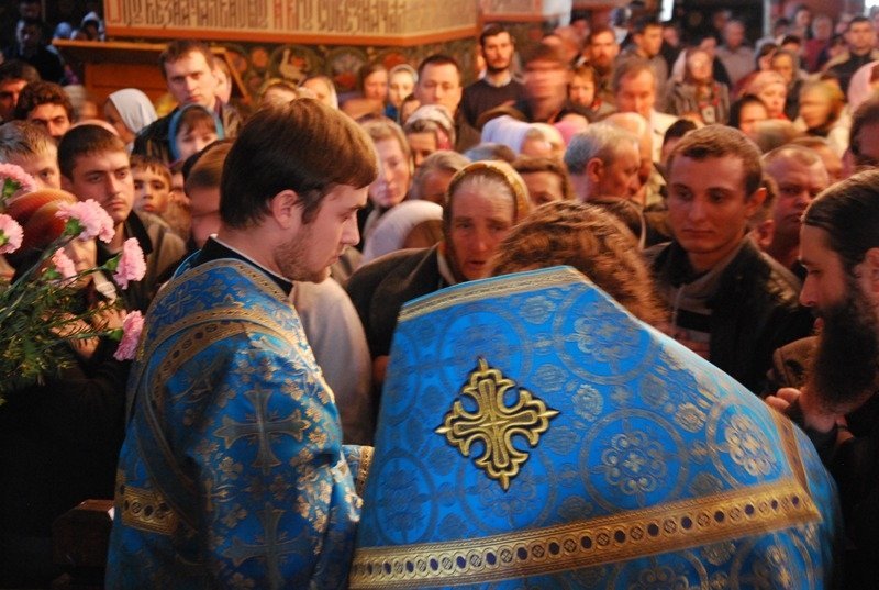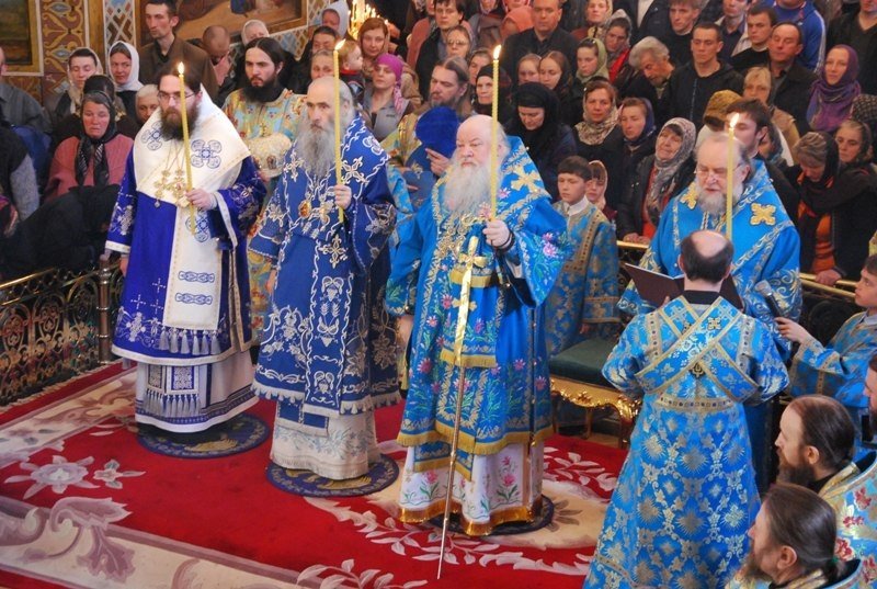 Після особливого прочитання Акафісту Божій Матері, під час якого співали архієрейський та братські хори обителі присутніх у храмі помазали святою оливою біля чудотворної Почаївської ікони Божої Матері.
